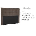 Cabeceira Estofada Cama Box Casal 140 Cm Cristal Suede MarromTransforme sua decoração com a elegância da Cabeceira Casal Estofada !Ideal para quem busca estilo e conforto, esta Cabeceira Elegante Casal é o toque perfeito para o seu quarto.Com um design único e detalhes que encantam, Cabeceira Luxo é a escolha certa para acompanhar sua cama e garantir momentos de relaxamento ainda mais aconchegantes. Seja para apoiar as costas enquanto lê um livro ou assistir TV, ela proporciona conforto incomparável.Fabricada com materiais de alta qualidade, como madeira eucalipto e revestimento em suede, esta cabeceira é durável e resistente, garantindo não apenas estilo, mas também funcionalidade para o seu ambiente.Não perca tempo! Adquira já a sua Cabeceira Cama Box e transforme seu quarto em um espaço ainda mais acolhedor. Aproveite agora mesmo!Dimensões:Altura: 129 cmLargura: 140 cmProfundidade: 5 cmAltura dos pés: 15 cmPeso: 6 KgEspecificações do Produto:Estrutura: Madeira EucaliptoTecido: SuedeMaterial dos pés: MadeiraNão acompanha o kit frameOs parafusos para fixação do frame e os pés serão enviados dentro do forro, na parte de trás da cabeceiraMontagem: O produto vai montado, necessitando apenas rosquear os pés (2)Instruções de Limpeza: Utilizar um pano limpo e levemente úmidoVocê irá receber: 01 volumeObservações Relevantes:Produto para uso residencial em ambiente interno, não devendo ficar exposto diretamente ao sol, calor e umidades excessivas;As imagens são meramente ilustrativas, não acompanham objetos de decoração e eletros;Cabeceira QueenCabeceira sob medidaCabeceira casal madeiraCabeceira casal acolchoadaCabeceira casal simplesCabeceira casal vintageCabeceira casal designCabeceira casal altaCabeceira casal rústicaCabeceira casal retrôCabeceira casal camurçaCabeceira casal tecidoCabeceira casal painelCabeceira casal modularCabeceira casal modernaCabeceira QueenCabeceira sob medidaCabeceira casal madeiraCabeceira casal acolchoadaCabeceira casal simplesCabeceira casal vintageCabeceira casal designCabeceira casal altaCabeceira casal rústicaCabeceira casal retrôCabeceira casal camurçaCabeceira casal tecidoCabeceira casal painelCabeceira casal modularCabeceira casal moderna
