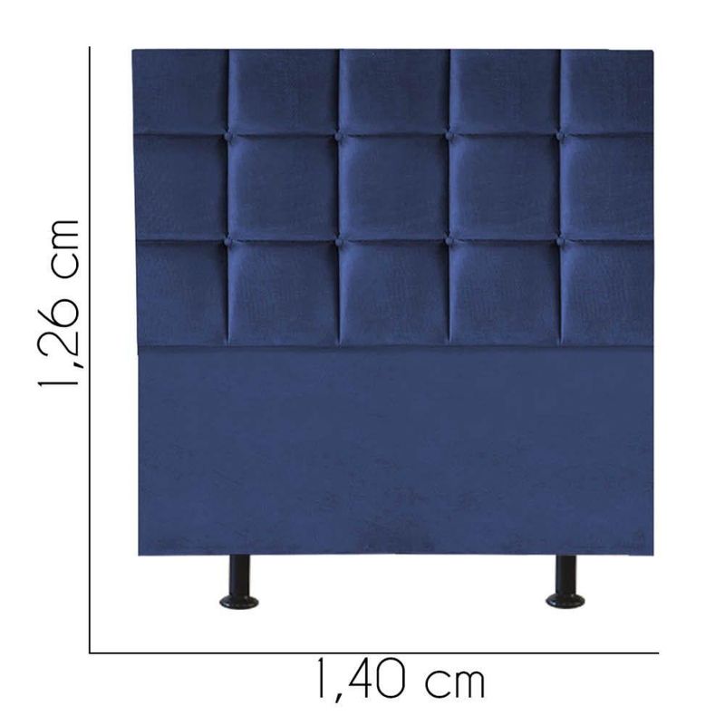 Cabeceira Estofada Cama Box Casal 140cm Espanha Corino Azul- Mabe Magazine Cabeceira Estofada - MABE MAGAZINEA cabeceira estofada para cama é uma peça que combina funcionalidade e estilo, tornando-se um elemento essencial para qualquer quarto. Com uma estrutura robusta de madeira de pinus e eucalipto, ela garante durabilidade e resistência. O revestimento em espuma proporciona um toque macio e confortável, ideal para momentos de relaxamento. Além de seu conforto, a cabeceira traz um ar de sofisticação ao ambiente, elevando a decoração do espaço. Sua variedade permite que se adapte a diferentes estilos, agregando charme e personalidade ao quarto. Sem dúvida, é uma escolha que une beleza e praticidade!Características:- Largura: 140 cm;- Altura: 125 cm;- Profundidade: 8 cm;- Fabricado em Madeira Maciça Pinus e Eucalipto;- Pés de Plático;- Não Acompanha Kit Frame para Fixar no Box.Observações:- Limpar com flanela limpa e seca. Não molhar o móvel e não expor em lugar úmido ou próximo de fontes de calor. Não usar produtos abrasivos;- As imagens ambientadas são meramente ilustrativas e podem apresentar itens que não compõe o produto;- Objetos decorativos que aparecem na foto não acompanham o produto;- As cores do produto podem variar de acordo com o monitor, a iluminação do ambiente, ou sua percepção visual;- Confira as dimensões antes da compra e certifique-se de que o produto passará por elevadores, portas e corredores, já que nossa entrega não inclui a subida de lances de escada, ou o içamento de produtos;- Produto para uso residencial em ambiente interno, não devendo ficar exposto diretamente ao sol, calor e umidades excessivas.