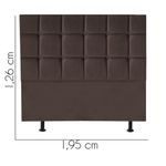 Cabeceira Estofada Cama Box Casal King 195cm Espanha Corino Marrom- Mabe Magazine Cabeceira Estofada - MABE MAGAZINEA cabeceira estofada para cama é uma peça que combina funcionalidade e estilo, tornando-se um elemento essencial para qualquer quarto. Com uma estrutura robusta de madeira de pinus e eucalipto, ela garante durabilidade e resistência. O revestimento em espuma proporciona um toque macio e confortável, ideal para momentos de relaxamento. Além de seu conforto, a cabeceira traz um ar de sofisticação ao ambiente, elevando a decoração do espaço. Sua variedade permite que se adapte a diferentes estilos, agregando charme e personalidade ao quarto. Sem dúvida, é uma escolha que une beleza e praticidade!Características:- Largura: 195 cm;- Altura: 125 cm;- Profundidade: 8 cm;- Fabricado em Madeira Maciça Pinus e Eucalipto;- Pés de Plático;- Não Acompanha Kit Frame para Fixar no Box.Observações:- Limpar com flanela limpa e seca. Não molhar o móvel e não expor em lugar úmido ou próximo de fontes de calor. Não usar produtos abrasivos;- As imagens ambientadas são meramente ilustrativas e podem apresentar itens que não compõe o produto;- Objetos decorativos que aparecem na foto não acompanham o produto;- As cores do produto podem variar de acordo com o monitor, a iluminação do ambiente, ou sua percepção visual;- Confira as dimensões antes da compra e certifique-se de que o produto passará por elevadores, portas e corredores, já que nossa entrega não inclui a subida de lances de escada, ou o içamento de produtos;- Produto para uso residencial em ambiente interno, não devendo ficar exposto diretamente ao sol, calor e umidades excessivas.