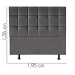 Cabeceira Estofada Cama Box Casal King 195cm Espanha Suede Cinza Escuro- Mabe Magazine Cabeceira Estofada - MABE MAGAZINEA cabeceira estofada para cama é uma peça que combina funcionalidade e estilo, tornando-se um elemento essencial para qualquer quarto. Com uma estrutura robusta de madeira de pinus e eucalipto, ela garante durabilidade e resistência. O revestimento em espuma proporciona um toque macio e confortável, ideal para momentos de relaxamento. Além de seu conforto, a cabeceira traz um ar de sofisticação ao ambiente, elevando a decoração do espaço. Sua variedade permite que se adapte a diferentes estilos, agregando charme e personalidade ao quarto. Sem dúvida, é uma escolha que une beleza e praticidade!Características:- Largura: 195 cm;- Altura: 125 cm;- Profundidade: 8 cm;- Fabricado em Madeira Maciça Pinus e Eucalipto;- Pés de Plático;- Não Acompanha Kit Frame para Fixar no Box.Observações:- Limpar com flanela limpa e seca. Não molhar o móvel e não expor em lugar úmido ou próximo de fontes de calor. Não usar produtos abrasivos;- As imagens ambientadas são meramente ilustrativas e podem apresentar itens que não compõe o produto;- Objetos decorativos que aparecem na foto não acompanham o produto;- As cores do produto podem variar de acordo com o monitor, a iluminação do ambiente, ou sua percepção visual;- Confira as dimensões antes da compra e certifique-se de que o produto passará por elevadores, portas e corredores, já que nossa entrega não inclui a subida de lances de escada, ou o içamento de produtos;- Produto para uso residencial em ambiente interno, não devendo ficar exposto diretamente ao sol, calor e umidades excessivas.