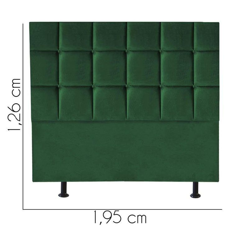 Cabeceira Estofada Cama Box Casal King 195cm Espanha Suede Verde- Mabe Magazine Cabeceira Estofada - MABE MAGAZINEA cabeceira estofada para cama é uma peça que combina funcionalidade e estilo, tornando-se um elemento essencial para qualquer quarto. Com uma estrutura robusta de madeira de pinus e eucalipto, ela garante durabilidade e resistência. O revestimento em espuma proporciona um toque macio e confortável, ideal para momentos de relaxamento. Além de seu conforto, a cabeceira traz um ar de sofisticação ao ambiente, elevando a decoração do espaço. Sua variedade permite que se adapte a diferentes estilos, agregando charme e personalidade ao quarto. Sem dúvida, é uma escolha que une beleza e praticidade!Características:- Largura: 195 cm;- Altura: 125 cm;- Profundidade: 8 cm;- Fabricado em Madeira Maciça Pinus e Eucalipto;- Pés de Plático;- Não Acompanha Kit Frame para Fixar no Box.Observações:- Limpar com flanela limpa e seca. Não molhar o móvel e não expor em lugar úmido ou próximo de fontes de calor. Não usar produtos abrasivos;- As imagens ambientadas são meramente ilustrativas e podem apresentar itens que não compõe o produto;- Objetos decorativos que aparecem na foto não acompanham o produto;- As cores do produto podem variar de acordo com o monitor, a iluminação do ambiente, ou sua percepção visual;- Confira as dimensões antes da compra e certifique-se de que o produto passará por elevadores, portas e corredores, já que nossa entrega não inclui a subida de lances de escada, ou o içamento de produtos;- Produto para uso residencial em ambiente interno, não devendo ficar exposto diretamente ao sol, calor e umidades excessivas.