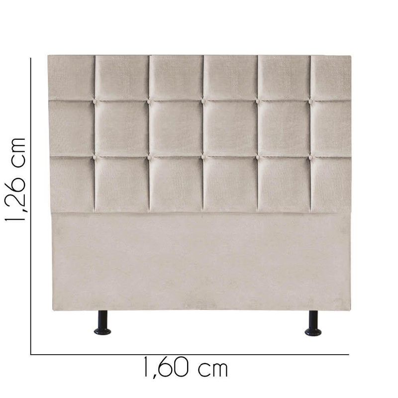 Cabeceira Estofada Cama Box Casal Queen 160cm Espanha Suede Bege- Mabe Magazine Cabeceira Estofada - MABE MAGAZINEA cabeceira estofada para cama é uma peça que combina funcionalidade e estilo, tornando-se um elemento essencial para qualquer quarto. Com uma estrutura robusta de madeira de pinus e eucalipto, ela garante durabilidade e resistência. O revestimento em espuma proporciona um toque macio e confortável, ideal para momentos de relaxamento. Além de seu conforto, a cabeceira traz um ar de sofisticação ao ambiente, elevando a decoração do espaço. Sua variedade permite que se adapte a diferentes estilos, agregando charme e personalidade ao quarto. Sem dúvida, é uma escolha que une beleza e praticidade!Características:- Largura: 160 cm;- Altura: 125 cm;- Profundidade: 8 cm;- Fabricado em Madeira Maciça Pinus e Eucalipto;- Pés de Plático;- Não Acompanha Kit Frame para Fixar no Box.Observações:- Limpar com flanela limpa e seca. Não molhar o móvel e não expor em lugar úmido ou próximo de fontes de calor. Não usar produtos abrasivos;- As imagens ambientadas são meramente ilustrativas e podem apresentar itens que não compõe o produto;- Objetos decorativos que aparecem na foto não acompanham o produto;- As cores do produto podem variar de acordo com o monitor, a iluminação do ambiente, ou sua percepção visual;- Confira as dimensões antes da compra e certifique-se de que o produto passará por elevadores, portas e corredores, já que nossa entrega não inclui a subida de lances de escada, ou o içamento de produtos;- Produto para uso residencial em ambiente interno, não devendo ficar exposto diretamente ao sol, calor e umidades excessivas.