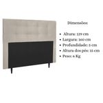 Cabeceira Estofada Cama Box Queen 160 Cm Cancún Suede BegeTransforme sua decoração com a elegância Cabeceira Casal Queen Estofada Cancún!Ideal para quem busca estilo e conforto, Cabeceira Cama Box Cancún é o toque perfeito para o seu quarto.Com um design único e detalhes que encantam, Cabeceira Moderna Cancún é a escolha certa para acompanhar sua cama e garantir momentos de relaxamento ainda mais aconchegantes. Seja para apoiar as costas enquanto lê um livro ou assistir TV, ela proporciona conforto incomparável.Fabricada com materiais de alta qualidade, como madeira eucalipto e revestimento em suede, esta cabeceira é durável e resistente, garantindo não apenas estilo, mas também funcionalidade para o seu ambiente.Não perca tempo! Adquira já a sua Cabeceira Alta Box e transforme seu quarto em um espaço ainda mais acolhedor. Aproveite agora mesmo!Dimensões e Especificações do Produto:Altura: 129 cmLargura: 160 cmProfundidade: 5 cmAltura dos pés: 15 cmPeso: 6 KgEstrutura: Madeira EucaliptoTecido: SuedeMaterial dos Pés: MadeiraNão acompanha o kit frameOs parafusos para fixação do frame e os pés serão enviados dentro do forro, na parte de trás da cabeceiraMontagem: O produto vai montado, necessitando apenas rosquear os pés (2)Instruções de Limpeza: Utilizar um pano limpo e levemente úmidoVocê irá receber: 01 volumeObservações Relevantes:Produto para uso residencial em ambiente interno, não devendo ficar exposto diretamente ao sol, calor e umidades excessivas;As imagens são meramente ilustrativas, não acompanham objetos de decoração e eletros;Cabeceira casal rainhaCabeceira camurçaCabeceira rústicaCabeceira retrôCabeceira sob medidaCabeceira embutidaCabeceira rainhaCabeceira modernaCabeceira camurçaCabeceira rainha retrôCabeceira casal rainhaCabeceira camurçaCabeceira rústicaCabeceira retrôCabeceira sob medidaCabeceira embutidaCabeceira rainhaCabeceira modernaCabeceira camurçaCabeceira rainha retrô
