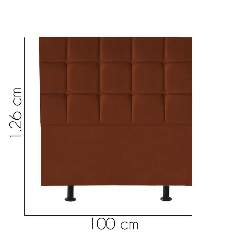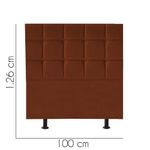 Cabeceira Estofada Cama Box Solteiro 100cm Espanha Suede Terra Cota- Mabe MagazineCabeceira Estofada - MABE MAGAZINEA cabeceira estofada para cama é uma peça que combina funcionalidade e estilo, tornando-se um elemento essencial para qualquer quarto. Com uma estrutura robusta de madeira de pinus e eucalipto, ela garante durabilidade e resistência. O revestimento em espuma proporciona um toque macio e confortável, ideal para momentos de relaxamento. Além de seu conforto, a cabeceira traz um ar de sofisticação ao ambiente, elevando a decoração do espaço. Sua variedade permite que se adapte a diferentes estilos, agregando charme e personalidade ao quarto. Sem dúvida, é uma escolha que une beleza e praticidade!Características:- Largura: 100 cm;- Altura: 125 cm;- Profundidade: 8 cm;- Fabricado em Madeira Maciça Pinus e Eucalipto;- Pés de Plático;- Não Acompanha Kit Frame para Fixar no Box.Observações:- Limpar com flanela limpa e seca. Não molhar o móvel e não expor em lugar úmido ou próximo de fontes de calor. Não usar produtos abrasivos;- As imagens ambientadas são meramente ilustrativas e podem apresentar itens que não compõe o produto;- Objetos decorativos que aparecem na foto não acompanham o produto;- As cores do produto podem variar de acordo com o monitor, a iluminação do ambiente, ou sua percepção visual;- Confira as dimensões antes da compra e certifique-se de que o produto passará por elevadores, portas e corredores, já que nossa entrega não inclui a subida de lances de escada, ou o içamento de produtos;- Produto para uso residencial em ambiente interno, não devendo ficar exposto diretamente ao sol, calor e umidades excessivas.