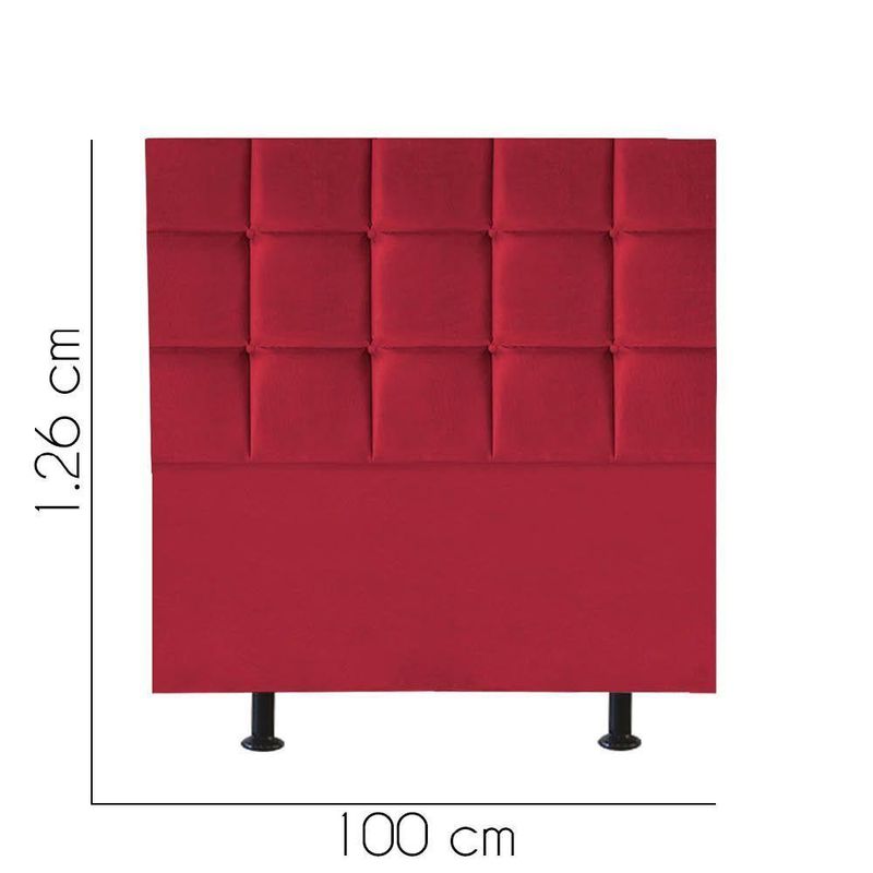 Cabeceira Estofada Cama Box Solteiro 100cm Espanha Suede Vermelho- Mabe MagazineCabeceira Estofada - MABE MAGAZINEA cabeceira estofada para cama é uma peça que combina funcionalidade e estilo, tornando-se um elemento essencial para qualquer quarto. Com uma estrutura robusta de madeira de pinus e eucalipto, ela garante durabilidade e resistência. O revestimento em espuma proporciona um toque macio e confortável, ideal para momentos de relaxamento. Além de seu conforto, a cabeceira traz um ar de sofisticação ao ambiente, elevando a decoração do espaço. Sua variedade permite que se adapte a diferentes estilos, agregando charme e personalidade ao quarto. Sem dúvida, é uma escolha que une beleza e praticidade!Características:- Largura: 100 cm;- Altura: 125 cm;- Profundidade: 8 cm;- Fabricado em Madeira Maciça Pinus e Eucalipto;- Pés de Plático;- Não Acompanha Kit Frame para Fixar no Box.Observações:- Limpar com flanela limpa e seca. Não molhar o móvel e não expor em lugar úmido ou próximo de fontes de calor. Não usar produtos abrasivos;- As imagens ambientadas são meramente ilustrativas e podem apresentar itens que não compõe o produto;- Objetos decorativos que aparecem na foto não acompanham o produto;- As cores do produto podem variar de acordo com o monitor, a iluminação do ambiente, ou sua percepção visual;- Confira as dimensões antes da compra e certifique-se de que o produto passará por elevadores, portas e corredores, já que nossa entrega não inclui a subida de lances de escada, ou o içamento de produtos;- Produto para uso residencial em ambiente interno, não devendo ficar exposto diretamente ao sol, calor e umidades excessivas.