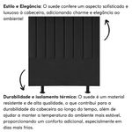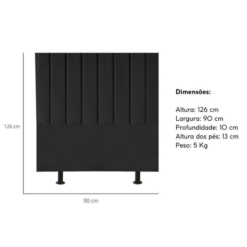 Cabeceira Estofada Cama Box Solteiro 90 Cm Carla Suede PretoTransforme sua decoração com a elegância da Cabeceira Solteiro Carla! Ideal para quem busca estilo e conforto, esta cabeceira é o toque perfeito para o seu quarto.Com um design único e detalhes que encantam, a Cabeceira Solteiro Carla é a escolha certa para acompanhar sua cama e garantir momentos de relaxamento ainda mais aconchegantes. Seja para apoiar as costas enquanto lê um livro ou assistir TV, ela proporciona conforto incomparável.Fabricada com materiais de alta qualidade, como madeira eucalipto e revestimento em suede, esta cabeceira é durável e resistente, garantindo não apenas estilo, mas também funcionalidade para o seu ambiente.Não perca tempo! Adquira já a sua Cabeceira Solteiro Carla e transforme seu quarto em um espaço ainda mais acolhedor. Aproveite agora mesmo!Dimensões:Altura: 126 cmLargura: 90 cmProfundidade: 10 cmAltura dos pés: 13 cmPeso: 5 KgEspecificações do Produto:Estrutura: Madeira Eucalipto de alta qualidadeTecido: SuedeEspuma: D-20Material dos pés: PlásticoNão acompanha o kit frameOs parafusos para fixação do frame e os pés serão enviados dentro do forro, na parte de trás da cabeceiraMontagem: O produto vai montado, necessitando apenas rosquear os pés (2)Instruções de Limpeza: Utilizar um pano limpo e levemente úmidoVocê irá receber: 01 volumeObservações Relevantes:Produto para uso residencial em ambiente interno, não devendo ficar exposto diretamente ao sol, calor e umidades excessivas;As imagens são meramente ilustrativas, não acompanham objetos de decoração e eletros;Cabeceira solteiro estofadaCabeceira solteiro madeiraCabeceira solteiro acolchoadaCabeceira solteiro modernaCabeceira solteiro simplesCabeceira solteiro estilosaCabeceira solteiro eleganteCabeceira solteiro vintageCabeceira solteiro design