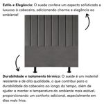 Cabeceira Estofada Cama Box Solteiro 90 Cm Mavie Suede Cor:cinza EscuroTransforme sua decoração com a elegância da Cabeceira Solteiro Mavie Carla! Ideal para quem busca estilo e conforto, esta cabeceira é o toque perfeito para o seu quarto.Com um design único e detalhes que encantam, a Cabeceira Solteiro Mavie Carla é a escolha certa para acompanhar sua cama e garantir momentos de relaxamento ainda mais aconchegantes. Seja para apoiar as costas enquanto lê um livro ou assistir TV, ela proporciona conforto incomparável.Fabricada com materiais de alta qualidade, como madeira eucalipto e revestimento em suede, esta cabeceira é durável e resistente, garantindo não apenas estilo, mas também funcionalidade para o seu ambiente.Não perca tempo! Adquira já a sua Cabeceira Solteiro Mavie Carla e transforme seu quarto em um espaço ainda mais acolhedor. Aproveite agora mesmo!Dimensões:Altura: 126 cmLargura: 90 cmProfundidade: 10 cmAltura dos pés: 13 cmPeso: 5 KgEspecificações do Produto:Estrutura: Madeira Eucalipto de alta qualidadeTecido: SuedeEspuma: D-20Material dos pés: PlásticoNão acompanha o kit frameOs parafusos para fixação do frame e os pés serão enviados dentro do forro, na parte de trás da cabeceiraMontagem: O produto vai montado, necessitando apenas rosquear os pés (2)Instruções de Limpeza: Utilizar um pano limpo e levemente úmidoVocê irá receber: 01 volumeObservações Relevantes:Produto para uso residencial em ambiente interno, não devendo ficar exposto diretamente ao sol, calor e umidades excessivas;As imagens são meramente ilustrativas, não acompanham objetos de decoração e eletros;Cabeceira solteiro estofadaCabeceira solteiro madeiraCabeceira solteiro acolchoadaCabeceira solteiro modernaCabeceira solteiro simplesCabeceira solteiro estilosaCabeceira solteiro eleganteCabeceira solteiro vintageCabeceira solteiro design