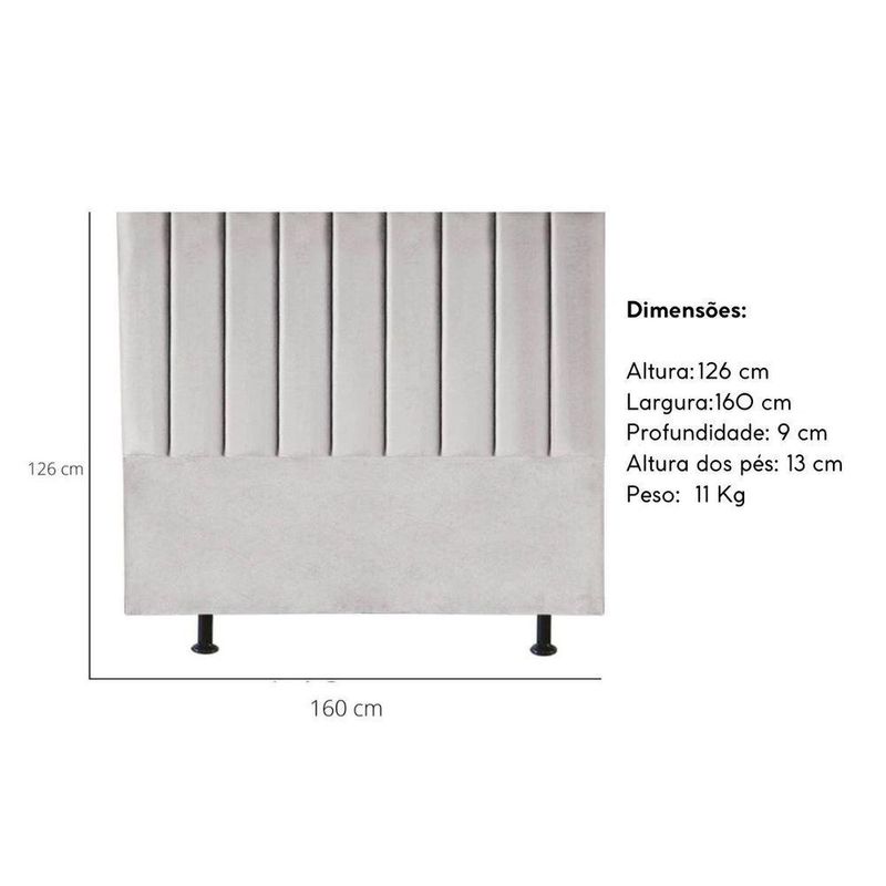 Cabeceira Estofada Cama Casal Queen Size160 Cm Alice Linho Cinza ClaroTransforme sua decoração com a elegância Cabeceira Casal Queen Estofada Alice Carla!Ideal para quem busca estilo e conforto, Cabeceira Cama Box Alice Carla é o toque perfeito para o seu quarto.Com um design único e detalhes que encantam, Cabeceira Moderna Alice Carla é a escolha certa para acompanhar sua cama e garantir momentos de relaxamento ainda mais aconchegantes. Seja para apoiar as costas enquanto lê um livro ou assistir TV, ela proporciona conforto incomparável.Fabricada com materiais de alta qualidade, como madeira eucalipto e revestimento em Linho , esta cabeceira é durável e resistente, garantindo não apenas estilo, mas também funcionalidade para o seu ambiente.Não perca tempo! Adquira já a sua Cabeceira Alta Box Alice Carla e transforme seu quarto em um espaço ainda mais acolhedor. Aproveite agora mesmo!Dimensões:Altura: 126 cmLargura: 160 cmProfundidade: 10 cmAltura dos pés: 13 cmPeso: 11 KgEspecificações do Produto:Estrutura: Madeira Eucalipto de alta qualidadeTecido: LinhoEspuma: D-20Material dos pés: PlásticoNão acompanha o kit frameOs parafusos para fixação do frame e os pés serão enviados dentro do forro, na parte de trás da cabeceiraMontagem: O produto vai montado, necessitando apenas rosquear os pés (2)Instruções de Limpeza: Utilizar um pano limpo e levemente úmidoVocê irá receber: 01 volumeObservações Relevantes:Produto para uso residencial em ambiente interno, não devendo ficar exposto diretamente ao sol, calor e umidades excessivas;As imagens são meramente ilustrativas, não acompanham objetos de decoração e eletros;Cabeceira casal rainhaCabeceira camurçaCabeceira rústicaCabeceira retrôCabeceira sob medidaCabeceira embutidaCabeceira rainhaCabeceira modernaCabeceira camurçaCabeceira rainha retrôCabeceira casal rainhaCabeceira camurçaCabeceira rústicaCabeceira retrôCabeceira sob medidaCabeceira embutidaCabeceira rainhaCabeceira modernaCabeceira camurçaCabeceira rainha retrô