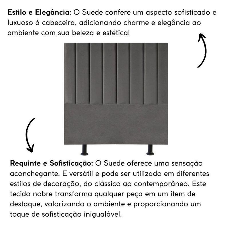 Cabeceira Estofada Cama Queen 160 Cm Luísa Suede E Frame Cor:cinzaTransforme sua decoração com a elegância da Cabeceira Casal Estofada Carla!Ideal para quem busca estilo e conforto, esta Cabeceira Elegante Casal Carla é o toque perfeito para o seu quarto.Com um design único e detalhes que encantam, Cabeceira Luxo Carla é a escolha certa para acompanhar sua cama e garantir momentos de relaxamento ainda mais aconchegantes. Seja para apoiar as costas enquanto lê um livro ou assistir TV, ela proporciona conforto incomparável.Fabricada com materiais de alta qualidade, como madeira eucalipto e revestimento em Suede, esta cabeceira é durável e resistente, garantindo não apenas estilo, mas também funcionalidade para o seu ambiente.Não perca tempo! Adquira já a sua Cabeceira Cama Box Carla e transforme seu quarto em um espaço ainda mais acolhedor. Aproveite agora mesmo!Dimensões:Altura: 126 cmLargura: 140 cmProfundidade: 8 cmAltura dos pés: 13 cmPeso: 9 KgEspecificações do Produto:Estrutura: Madeira Eucalipto de alta qualidadeTecido: SuedeEspuma: D-20Material dos pés: PlásticoAcompanha o kit frameOs parafusos para fixação do frame e os pés serão enviados dentro do forro, na parte de trás da cabeceiraMontagem: O produto vai montado, necessitando apenas rosquear os pés (2)Instruções de Limpeza: Utilizar um pano limpo e levemente úmidoVocê irá receber: 01 volumeObservações Relevantes:Produto para uso residencial em ambiente interno, não devendo ficar exposto diretamente ao sol, calor e umidades excessivas;As imagens são meramente ilustrativas, não acompanham objetos de decoração e eletros;Cabeceira sob medidaCabeceira casal madeiraCabeceira casal acolchoadaCabeceira casal simplesCabeceira casal vintageCabeceira casal designCabeceira casal altaCabeceira casal rústicaCabeceira casal retrôCabeceira casal camurçaCabeceira casal tecidoCabeceira casal painelCabeceira casal modularCabeceira casal moderna