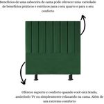 Cabeceira Estofada Cama Solteiro 90 Cm Sophia Carla Suede verde MusgoSão os detalhes que transformam nossa decoração, não é mesmo? E um belo exemplo disso é a Cabeceira Estofada Cama Box Solteiro Carla que possui um design único e detalhes que garantem um visual mais convidativo ao quarto. Ela é uma ótima alternativa não só para acompanhar sua cama, como também garantir que você tenha um apoio mais aconchegante para as costas quando estiver sentado.Revestida em suede e fabricada em madeira eucalipto de alta qualidade, é o acessório perfeito para valorizar a decoração do seu quarto!Compre já e deixe seu quarto ainda mais aconchegante com essa linda Cabeceira!Dimensões:Altura: 114 cmLargura: 90 cmProfundidade: 7 cmAltura dos pés: 12 cmPeso: 5 KgEspecificações do Produto:Estrutura: Madeira Eucalipto de alta qualidadeTecido: SuedeMaterial dos pés: PlásticoNão acompanha o kit frameOs parafusos para fixação do frame e os pés serão enviados dentro do forro, na parte de trás da cabeceiraMontagem: O produto vai montado, necessitando apenas rosquear os pés (2)Instruções de Limpeza: Utilizar um pano limpo e levemente úmidoVocê irá receber: 01 volumeObservações Relevantes:- Produto para uso residencial em ambiente interno, não devendo ficar exposto diretamente ao sol, calor e umidades excessivas;- Pode haver alguma diferença de tonalidade entre a imagem e o produto real, por conta do tratamento de imagens, lote do tecido e a calibração de cores do seu monitor;- Para futuras compras, não garantimos a mesma tonalidade de cor, pois existe variação a cada lote do fabricante do tecido;- As imagens são meramente ilustrativas, não acompanham objetos de decoração e eletros;- Confira as dimensões do produto no momento da compra e certifique-se de que passará normalmente por escadas, elevadores, portas e corredores;Cabeceira para quarto individualMóvel estofado para cama boxDecoração de quarto com cabeceiraCabeceira de cama sem kit frameCabeceira com detalhes de montagemEstofamento premium para cabeceiraQuarto elegante com cabeceira CarlaOpções de cores para cabeceiraEstofado para cama box solteiroMobília de quarto com toque luxuosoCabeceira sem necessidade de ferramentasMelhore o ambiente com cabeceira estofadaCabeceira de qualidade para quartoDecore seu quarto com Cabeceira CarlaSuede de alta durabilidade para cabeceira