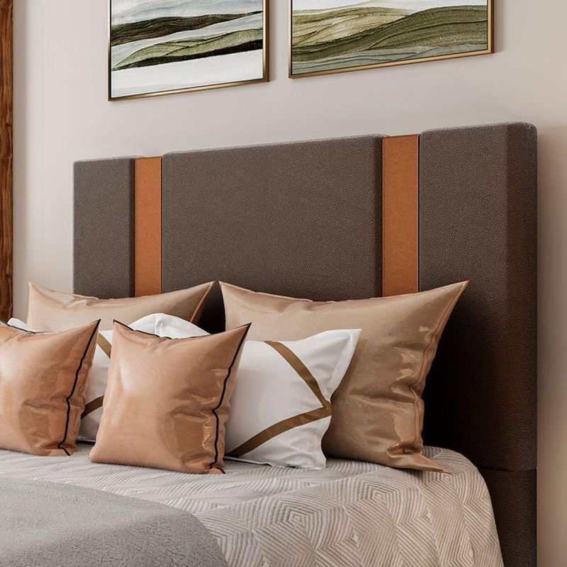 Cabeceira Estofada Casal 140 Cm Ametista Corino Cor: MarromA Cabeceira Estofada Ametista é sinônimo de elegância e conforto, perfeita para quem deseja transformar o quarto em um ambiente sofisticado e acolhedor. Seu design moderno, com detalhes bem trabalhados e acabamento refinado, valoriza a cama e adiciona um toque de charme ao espaço.Com estrutura firme e estofamento macio, a cabeceira estofada Ametista oferece apoio ideal para momentos de leitura, descanso ou lazer. Seu visual equilibrado combina estilo e funcionalidade, proporcionando ao ambiente um ar de requinte e conforto incomparável.Versátil e durável, a Cabeceira Estofada Ametista se adapta facilmente a diferentes estilos de decoração, do clássico ao contemporâneo. É a escolha certa para quem busca um móvel com design sofisticado, acabamento de alta qualidade e um toque de elegância em cada detalhe.Informações Técnicas:Tecido: CorinoEstrutura: Madeira de EucaliptoEstofamento: EspumaMontagem: Possui abertura para fixação com frame (frame não incluso)Dimensões:Altura total: 130 cmLargura total: 142 cmProfundidade total: 8 cmPeso: 10 kgInformações Importantes:Confira as dimensões do produto no momento da compra e certifique-se de que passará normalmente por escadas, elevadores, portas e corredores.Os produtos vão embalados e enviados com total segurança.As cores dos produtos podem sofrer alterações dependendo do seu monitor.Não nos responsabilizamos no ato da entrega por montagens, desmontagens, instalações de produtos.Não nos responsabilizamos no ato da entrega por subir escadas, elevadores, nem utilização de guinchos ou equipamentos similares para acesso a pisos superiores em apartamentos.