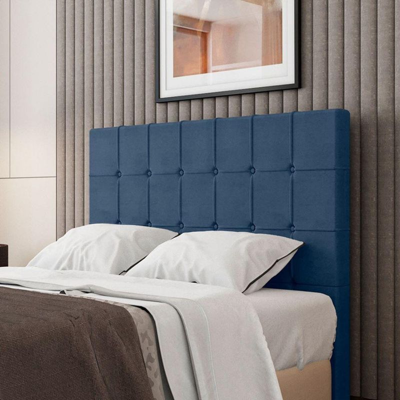 Cabeceira Estofada Casal 140 Cm Turmalina Veludo Cor: Azul MarinhoA Cabeceira Estofada Turmalina é a escolha perfeita para quem deseja transformar o quarto em um ambiente elegante, confortável e acolhedor. Com design sofisticado e acabamento de alto padrão, ela se destaca como o elemento central da decoração, valorizando a cama e o estilo do espaço.Produzida com estrutura resistente e estofamento macio, a cabeceira estofada Turmalina proporciona conforto ideal para momentos de descanso e leitura. Seu visual moderno e detalhamento cuidadoso criam uma atmosfera de charme e bem-estar, elevando a estética do ambiente.Versátil e atemporal, a Cabeceira Estofada Turmalina se adapta facilmente a diferentes estilos decorativos, do clássico ao contemporâneo. É a escolha certa para quem busca qualidade, durabilidade e um toque refinado, tornando o quarto mais convidativo e cheio de personalidade.Informações Técnicas:Tecido: VeludoEstrutura: Madeira de EucaliptoEstofamento: EspumaMontagem: Possui abertura para fixação com frame (frame não incluso)Dimensões:Altura total: 130 cmLargura total: 142 cmProfundidade total: 10 cmPeso: 10 kgInformações Importantes:Confira as dimensões do produto no momento da compra e certifique-se de que passará normalmente por escadas, elevadores, portas e corredores.Os produtos vão embalados e enviados com total segurança.As cores dos produtos podem sofrer alterações dependendo do seu monitor.Não nos responsabilizamos no ato da entrega por montagens, desmontagens, instalações de produtos.Não nos responsabilizamos no ato da entrega por subir escadas, elevadores, nem utilização de guinchos ou equipamentos similares para acesso a pisos superiores em apartamentos.