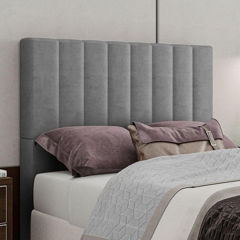 Cabeceira Estofada Solteiro 90 Cm Esmeralda Veludo Cor: CinzaA Cabeceira Estofada Esmeralda é a opção ideal para quem busca combinar elegância, conforto e sofisticação no quarto. Com um design moderno e acabamento refinado, ela transforma o ambiente em um espaço mais aconchegante e elegante, valorizando a cama e a decoração.Produzida com materiais de alta qualidade, a cabeceira estofada Esmeralda possui estrutura firme e estofamento macio que proporcionam o suporte perfeito para momentos de leitura e descanso. Seu visual imponente e linhas bem definidas criam uma atmosfera de requinte e bem-estar.Versátil e atemporal, a Cabeceira Estofada Esmeralda se adapta facilmente a diferentes estilos de decoração, do clássico ao contemporâneo. É a escolha certa para quem deseja unir durabilidade, conforto e beleza em um único móvel que realça o charme e a personalidade do ambiente.Informações Técnicas:Tecido: VeludoEstrutura: Madeira de EucaliptoEstofamento: EspumaMontagem: Possui abertura para fixação com frame (frame não incluso)Dimensões:Altura total: 130 cmLargura total: 90 cmProfundidade total: 7 cmPeso: 9 kgInformações Importantes:Confira as dimensões do produto no momento da compra e certifique-se de que passará normalmente por escadas, elevadores, portas e corredores.Os produtos vão embalados e enviados com total segurança.As cores dos produtos podem sofrer alterações dependendo do seu monitor.Não nos responsabilizamos no ato da entrega por montagens, desmontagens, instalações de produtos.Não nos responsabilizamos no ato da entrega por subir escadas, elevadores, nem utilização de guinchos ou equipamentos similares para acesso a pisos superiores em apartamentos.