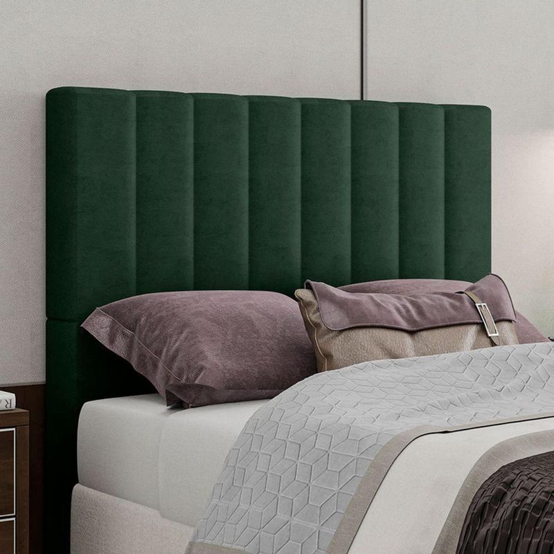 Cabeceira Estofada Solteiro 90 Cm Esmeralda Veludo Cor: VerdeA Cabeceira Estofada Esmeralda é a opção ideal para quem busca combinar elegância, conforto e sofisticação no quarto. Com um design moderno e acabamento refinado, ela transforma o ambiente em um espaço mais aconchegante e elegante, valorizando a cama e a decoração.Produzida com materiais de alta qualidade, a cabeceira estofada Esmeralda possui estrutura firme e estofamento macio que proporcionam o suporte perfeito para momentos de leitura e descanso. Seu visual imponente e linhas bem definidas criam uma atmosfera de requinte e bem-estar.Versátil e atemporal, a Cabeceira Estofada Esmeralda se adapta facilmente a diferentes estilos de decoração, do clássico ao contemporâneo. É a escolha certa para quem deseja unir durabilidade, conforto e beleza em um único móvel que realça o charme e a personalidade do ambiente.Informações Técnicas:Tecido: VeludoEstrutura: Madeira de EucaliptoEstofamento: EspumaMontagem: Possui abertura para fixação com frame (frame não incluso)Dimensões:Altura total: 130 cmLargura total: 90 cmProfundidade total: 7 cmPeso: 9 kgInformações Importantes:Confira as dimensões do produto no momento da compra e certifique-se de que passará normalmente por escadas, elevadores, portas e corredores.Os produtos vão embalados e enviados com total segurança.As cores dos produtos podem sofrer alterações dependendo do seu monitor.Não nos responsabilizamos no ato da entrega por montagens, desmontagens, instalações de produtos.Não nos responsabilizamos no ato da entrega por subir escadas, elevadores, nem utilização de guinchos ou equipamentos similares para acesso a pisos superiores em apartamentos.