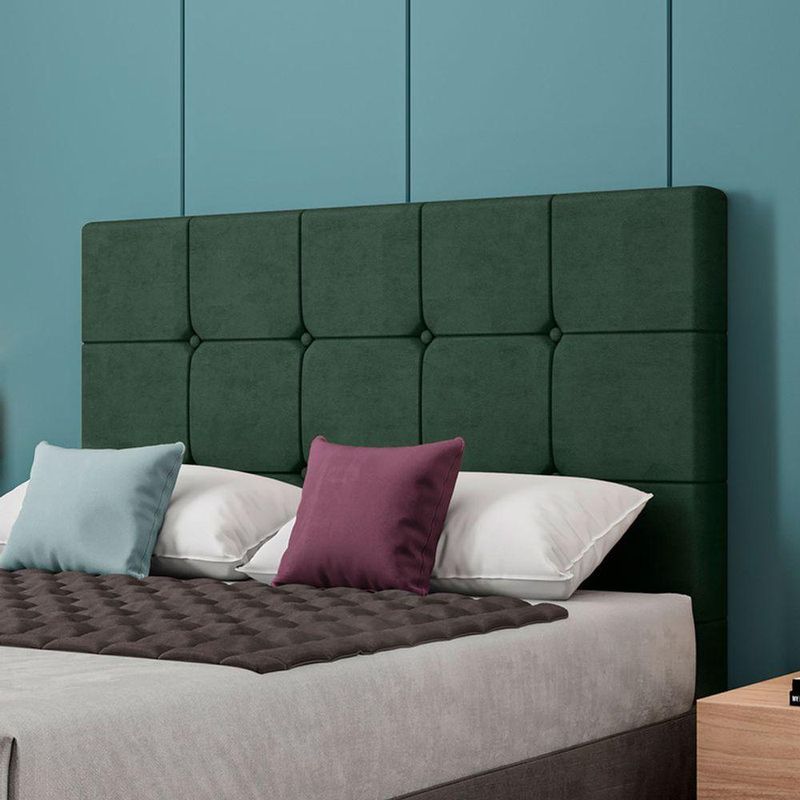 Cabeceira Estofada Solteiro 90 Cm Safira Veludo Cor: VerdeA Cabeceira Estofada Safira é a escolha perfeita para quem deseja unir conforto e elegância em um único móvel. Seu design sofisticado e acabamento detalhado transformam o quarto em um ambiente mais acolhedor e estiloso, destacando-se como o ponto central da decoração.Com estrutura resistente e estofamento macio, a cabeceira estofada oferece apoio ideal para momentos de leitura, descanso ou lazer. Seu visual moderno harmoniza facilmente com diferentes estilos de decoração, proporcionando um toque de requinte e personalidade ao espaço.Versátil e funcional, a Cabeceira Estofada Safira é ideal para quem busca conforto aliado à estética. Seja em quartos de casal ou solteiro, ela valoriza o ambiente com sua presença marcante e acabamento de alta qualidade, tornando o espaço mais elegante e convidativo.Informações Técnicas:Tecido: VeludoEstrutura: Madeira de EucaliptoEstofamento: EspumaMontagem: Possui abertura para fixação com frame (frame não incluso)Dimensões:Altura total: 130 cmLargura total: 92 cmProfundidade total: 8 cmPeso: 9 kgInformações Importantes:Confira as dimensões do produto no momento da compra e certifique-se de que passará normalmente por escadas, elevadores, portas e corredores.Os produtos vão embalados e enviados com total segurança.As cores dos produtos podem sofrer alterações dependendo do seu monitor.Não nos responsabilizamos no ato da entrega por montagens, desmontagens, instalações de produtos.Não nos responsabilizamos no ato da entrega por subir escadas, elevadores, nem utilização de guinchos ou equipamentos similares para acesso a pisos superiores em apartamentos.