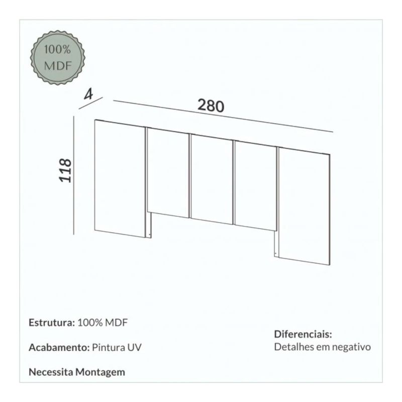 ColchõesCabeceiras Cama BoxQueen SizeCabeceira Queen em MDF 280 x 118 cm Lisa Off White Dalla Costa
