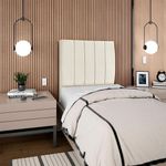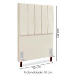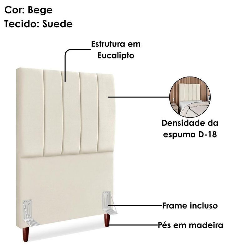 Cabeceira Solteiro 90 Cm Com Frame Carla Suede Bege Artte BegeCabeceira Solteiro Carla, moderna e aconchegante trazendo elegância para seu quarto! Estrutura em Madeira de Eucalipto (reflorestada), estofada em espuma (densidade D-18) e revestida em tecido Suede (clássico aveludado com toque suave). Incluso Frame (metal resistente com reforço lateral e acabamento em pintura epóxi) para fixação em camas Box e pés em madeira maciça (12 cm). Pode haver variação no design do frame dependendo do lote de peças. A função do acessório e usabilidade permanece a mesma. Este produto será entregue em 1 volume.Medidas:Altura: 125 cmLargura: 90 cmProfundidade: 10 cmEspecificações Técnicas:Modelo: CarlaMateriais: Madeira (Eucalipto), espuma e tecido.Estilo: ModernoAmbiente: QuartoSistema de montagemCabeceira já montada, necessita fixação dos pés e Frame na cabeceira e na cama.Montagem, desmontagem e outras instalações serão de responsabilidade do cliente!Recomendação de LimpezaPara a limpeza, utilize um pano seco para retirada do pó.Evite o uso de produtos abrasivos e o contato direto com a umidade.Cabeceira versátil que valoriza a decoração e garante maior aconchego ao seu descanso.Importante SaberAs imagens são meramente ilustrativas, não acompanham objetos de decoração e eletrônicos.A tonalidade da cor do produto pode variar de acordo a calibração de cores do seu monitor, a iluminação do ambiente ou sua percepção visual.O cliente deve verificar a quantidade de VOLUMES descritos na nota, a situação da embalagem, caso haja algum dano NÃO ASSINE o comprovante de recebimento e RECUSE a mercadoria.Não nos responsabilizamos por subir escadas/elevadores ou pelo transporte por guincho em apartamentos. Eventuais despesas são de responsabilidade do comprador.Confira as dimensões do produto e certifique-se de que passarão normalmente por supostos elevadores, portas, escadas ou corredores de sua residência. Recomendamos que o responsável pelo recebimento confira se os produtos entregues correspondem ao modelo e à quantidade adquirida.Garantia De Fábrica90 dias para eventuais defeitos de fabricação. Produto: Cabeceira Solteiro 90 cm Com Frame | Classificação da Cama: Solteiro | Largura: 90 cm | Tamanhos de cama: Solteiro | Marca: Arte das Cabeceiras | Altura: 125 cm | Quantidade de caixas de embalagem: 1 | Profundidade: 10 cm | Cor: Bege