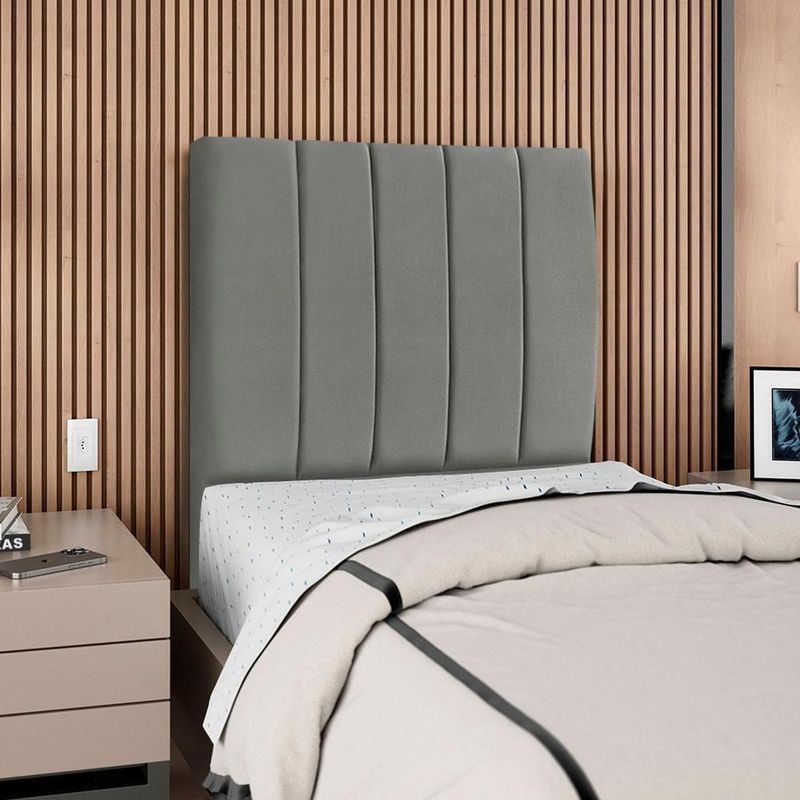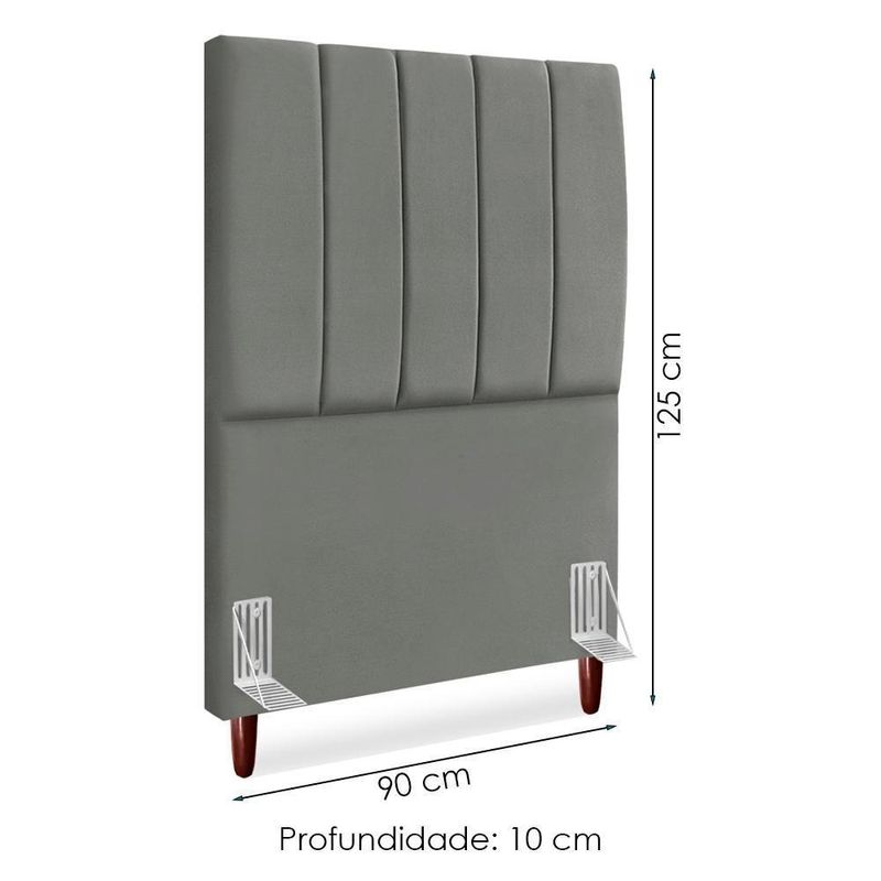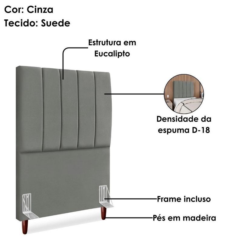 Cabeceira Solteiro 90 Cm Com Frame Carla Suede Cinza Artte CinzaCabeceira Solteiro Carla, moderna e aconchegante trazendo elegância para seu quarto! Estrutura em Madeira de Eucalipto (reflorestada), estofada em espuma (densidade D-18) e revestida em tecido Suede (clássico aveludado com toque suave). Incluso Frame (metal resistente com reforço lateral e acabamento em pintura epóxi) para fixação em camas Box e pés em madeira maciça (12 cm). Pode haver variação no design do frame dependendo do lote de peças. A função do acessório e usabilidade permanece a mesma. Este produto será entregue em 1 volume.Medidas:Altura: 125 cmLargura: 90 cmProfundidade: 10 cmEspecificações Técnicas:Modelo: CarlaMateriais: Madeira (Eucalipto), espuma e tecido.Estilo: ModernoAmbiente: QuartoSistema de montagemCabeceira já montada, necessita fixação dos pés e Frame na cabeceira e na cama.Montagem, desmontagem e outras instalações serão de responsabilidade do cliente!Recomendação de LimpezaPara a limpeza, utilize um pano seco para retirada do pó.Evite o uso de produtos abrasivos e o contato direto com a umidade.Cabeceira versátil que valoriza a decoração e garante maior aconchego ao seu descanso.Importante SaberAs imagens são meramente ilustrativas, não acompanham objetos de decoração e eletrônicos.A tonalidade da cor do produto pode variar de acordo a calibração de cores do seu monitor, a iluminação do ambiente ou sua percepção visual.O cliente deve verificar a quantidade de VOLUMES descritos na nota, a situação da embalagem, caso haja algum dano NÃO ASSINE o comprovante de recebimento e RECUSE a mercadoria.Não nos responsabilizamos por subir escadas/elevadores ou pelo transporte por guincho em apartamentos. Eventuais despesas são de responsabilidade do comprador.Confira as dimensões do produto e certifique-se de que passarão normalmente por supostos elevadores, portas, escadas ou corredores de sua residência. Recomendamos que o responsável pelo recebimento confira se os produtos entregues correspondem ao modelo e à quantidade adquirida.Garantia De Fábrica90 dias para eventuais defeitos de fabricação. Produto: Cabeceira Solteiro 90 cm Com Frame | Classificação da Cama: Solteiro | Largura: 90 cm | Tamanhos de cama: Solteiro | Marca: Arte das Cabeceiras | Altura: 125 cm | Quantidade de caixas de embalagem: 1 | Profundidade: 10 cm | Cor: Cinza