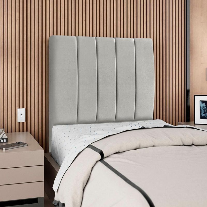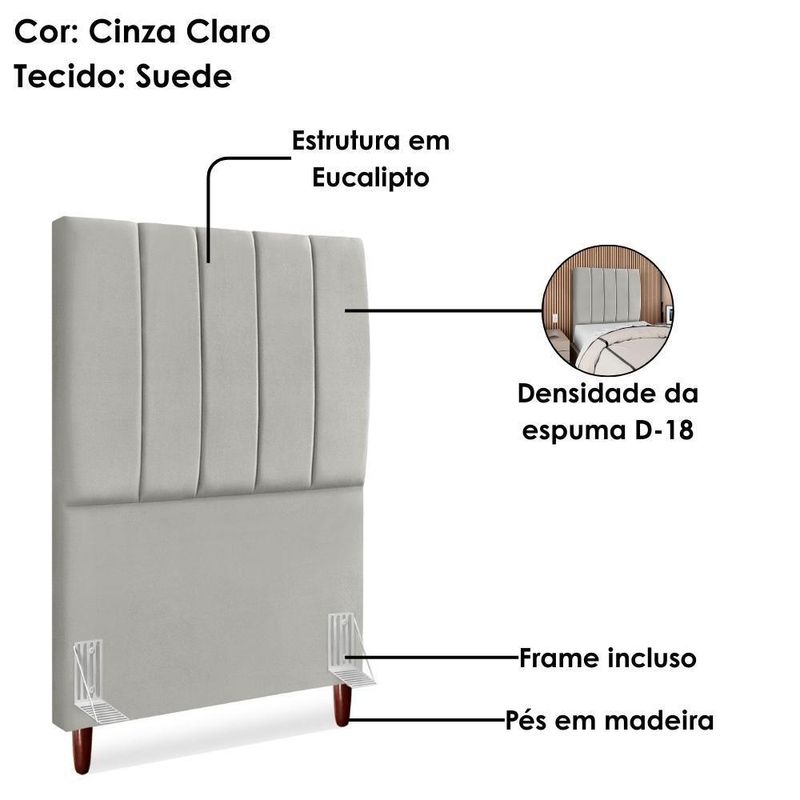 Cabeceira Solteiro 90 Cm Com Frame Carla Suede Cinza Claro Artte Cinza ClaroCabeceira Solteiro Carla, moderna e aconchegante trazendo elegância para seu quarto! Estrutura em Madeira de Eucalipto (reflorestada), estofada em espuma (densidade D-18) e revestida em tecido Suede (clássico aveludado com toque suave). Incluso Frame (metal resistente com reforço lateral e acabamento em pintura epóxi) para fixação em camas Box e pés em madeira maciça (12 cm). Pode haver variação no design do frame dependendo do lote de peças. A função do acessório e usabilidade permanece a mesma. Este produto será entregue em 1 volume.Medidas:Altura: 125 cmLargura: 90 cmProfundidade: 10 cmEspecificações Técnicas:Modelo: CarlaMateriais: Madeira (Eucalipto), espuma e tecido.Estilo: ModernoAmbiente: QuartoSistema de montagemCabeceira já montada, necessita fixação dos pés e Frame na cabeceira e na cama.Montagem, desmontagem e outras instalações serão de responsabilidade do cliente!Recomendação de LimpezaPara a limpeza, utilize um pano seco para retirada do pó.Evite o uso de produtos abrasivos e o contato direto com a umidade.Cabeceira versátil que valoriza a decoração e garante maior aconchego ao seu descanso.Importante SaberAs imagens são meramente ilustrativas, não acompanham objetos de decoração e eletrônicos.A tonalidade da cor do produto pode variar de acordo a calibração de cores do seu monitor, a iluminação do ambiente ou sua percepção visual.O cliente deve verificar a quantidade de VOLUMES descritos na nota, a situação da embalagem, caso haja algum dano NÃO ASSINE o comprovante de recebimento e RECUSE a mercadoria.Não nos responsabilizamos por subir escadas/elevadores ou pelo transporte por guincho em apartamentos. Eventuais despesas são de responsabilidade do comprador.Confira as dimensões do produto e certifique-se de que passarão normalmente por supostos elevadores, portas, escadas ou corredores de sua residência. Recomendamos que o responsável pelo recebimento confira se os produtos entregues correspondem ao modelo e à quantidade adquirida.Garantia De Fábrica90 dias para eventuais defeitos de fabricação. Produto: Cabeceira Solteiro 90 cm Com Frame | Classificação da Cama: Solteiro | Largura: 90 cm | Tamanhos de cama: Solteiro | Marca: Arte das Cabeceiras | Altura: 125 cm | Quantidade de caixas de embalagem: 1 | Profundidade: 10 cm | Cor: Cinza Claro