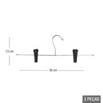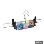 Cabide de Metal 2 Peças com Prendedor Plást - Fabricado em material resistente e durável, os cabides são feitos em metal, permitindo mais resistência; - Eles possuem presilhas para calça, short e saia; - Contém 2 peças; Especificações: Marca : MM PASSERI Tipo de material : Metal Cores ou Estampa : Prata