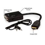 == Cabo Adaptador HDMI x VGA com Áudio == Converte o sinal digital HDMI para sinal analógico VGA com áudio digital. Ativar PC, DVD, PS3, Xbox360 e outros dispositivos de entrada HDMI macho para ser ligado até o monitor do computador, Projetor ou outra tela.• Excelente qualidade• Suporta Saída de alta definição: 720p, 1080p etc.• Utilize em placas mãe que tem saída para dois monitores, mas uma delas é em HDMI• Aplique a projetores, aproveite monitores grandes de CRT, televisões com entrada VGA, etc.• Plug and play• Não requer alimentação externa• Comprimento do cabo com entradas P2 é de um metro• Condutor de cobre de alta dureza, com terminal, tornando-o resistente ao desgaste e evitando perda de sinal• Entrada HDMI 1.0.CARACTERÍSTICAS• Não necessita de fonte de energia• Plug & Play• Resolução até 720p / 1080i/ 1080p• Saída de áudio estéreo P2 (2.5)• Saída de Vídeo VGA• Entrada: HDMI == GARANTIA 90 DIAS == PRODUTO NOVO == IMAGEM ILUSTRATIVA == FABRICANTE JS TECHNOLOGY / BROADCOM TECHNOLOGY == O ENVIO É EFETUADO DE ACORDO COM O MODELO DISPONÍVEL NO ATO DA EXPEDIÇÃO == EM CASO DE DÚVIDAS, ANTES DE COMPRAR, FAVOR ENTRAR EM CONTATO NO CAMPO DE PERGUNTAS E RESPOSTAS == TODOS OS NOSSOS PRODUTOS SÃO FORNECIDOS COM GARANTIA LEGAL E NOTA FISCAL ==