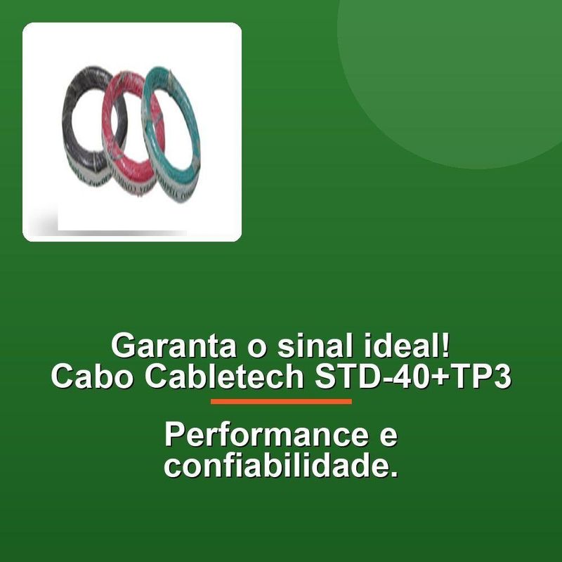 Cabo Coaxial Cabletech Std-40+tp3 Branco 305mO Cabo Coaxial Cabletech STD-40+TP3 é a solução ideal para quem busca alta performance e confiabilidade em projetos que demandam excelência na transmissão de sinais. Com sua cor branca elegante e comprimento generoso de 305 metros, este cabo foi desenvolvido para atender às mais diversas aplicações, sendo amplamente utilizado em projetos de Banda C, como sistemas de recepção parabólica.Dentre suas características técnicas, destaca-se a impedância nominal de 75 Ohms, que proporciona estabilidade e eficiência na transmissão de dados. Sua velocidade de propagação, de 82%, garante um desempenho superior, reduzindo perdas e otimizando a qualidade do sinal. O condutor central, feito de aço cobreado, combina resistência e condutividade, enquanto o dielétrico de polietileno expandido entrega isolamento elétrico de alta qualidade para maior durabilidade.O sistema de blindagem desse cabo é um dos seus grandes diferenciais. Ele conta com uma blindagem primária composta por fita de alumínio e uma blindagem secundária em trança de liga de alumínio, que protegem o cabo contra interferências externas, assegurando o máximo de integridade no sinal transmitido. Adicionalmente, o tripolar condutor de cobre isolado é ideal para alimentação de servo motores em sistemas parabólicos, oferecendo funcionalidade e versatilidade. É importante observar que o tripolar deve ser utilizado em distâncias de até 40 metros para garantir pleno desempenho.Outro destaque é sua capa externa em PVC, que proporciona resistência mecânica e proteção contra intempéries, tornando este cabo uma escolha robusta e confiável para ambientes internos e externos. Embora seja frequentemente utilizado em sistemas de Banda C, o Cabletech STD-40+TP3 é um equipamento versátil que pode ser aplicado em outros projetos, adaptando-se às mais diversas necessidades.O Cabo Coaxial Cabletech STD-40+TP3 é a solução ideal para quem busca alta performance e confiabilidade em projetos que demandam excelência na transmissão de sinais. Com sua cor branca elegante e comprimento generoso de 305 metros, este cabo foi desenvolvido para atender às mais diversas aplicações, sendo amplamente utilizado em projetos de Banda C, como sistemas de recepção parabólica.Dentre suas características técnicas, destaca-se a impedância nominal de 75 Ohms, que proporciona estabilidade e eficiência na transmissão de dados. Sua velocidade de propagação, de 82%, garante um desempenho superior, reduzindo perdas e otimizando a qualidade do sinal. O condutor central, feito de aço cobreado, combina resistência e condutividade, enquanto o dielétrico de polietileno expandido entrega isolamento elétrico de alta qualidade para maior durabilidade.O sistema de blindagem desse cabo é um dos seus grandes diferenciais. Ele conta com uma blindagem primária composta por fita de alumínio e uma blindagem secundária em trança de liga de alumínio, que protegem o cabo contra interferências externas, assegurando o máximo de integridade no sinal transmitido. Adicionalmente, o tripolar condutor de cobre isolado é ideal para alimentação de servo motores em sistemas parabólicos, oferecendo funcionalidade e versatilidade. É importante observar que o tripolar deve ser utilizado em distâncias de até 40 metros para garantir pleno desempenho.Outro destaque é sua capa externa em PVC, que proporciona resistência mecânica e proteção contra intempéries, tornando este cabo uma escolha robusta e confiável para ambientes internos e externos. Embora seja frequentemente utilizado em sistemas de Banda C, o Cabletech STD-40+TP3 é um equipamento versátil que pode ser aplicado em outros projetos, adaptando-se às mais diversas necessidades.