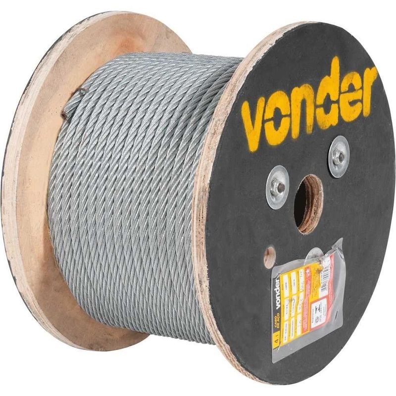 Cabo De Aço Galvanizado, Alma De Fibra, 9,53 Mm - 3/8, 6 X 19s, Vonder OstenvonderCabo de aço Galvanizado, Alma de Fibra, 9,53 mm - 3/8, 6 x 19s, Vonder OstenVonder -Conteúdo da embalagem: 1 Bobina com 100 metros.Aplicação: Indicado para cargas estáticas e dinâmicas. ATENÇÃO: para segurança e garantia do produto, mantenha sempre o selo de conformidade do Inmetro junto à bobina do cabo de aço.Destaques: Possui boa resistência a flexões e ao desgaste por abrasão. Possui maior resistência à corrosão/oxidação.Referência: 3522095619Garantia - E (CDC): Garantia legal: 90 diasCertificados: CIV 2788-24-06Produto com certificação Compulsória, conforme Portaria Inmetro nº 367 de 08/09/2021 e norma ABNT NBR ISO 2408 com foco em segurança. Certificado por Organismo de Certificação de Produto acreditado pelo Inmetro. Número de registro de objeto: 000505/2019CIV 2656-24-06Produto com certificação Compulsória, conforme Portaria Inmetro nº 367 de 08/09/2021 e norma ABNT NBR ISO 2408 com foco em segurança. Certificado por Organismo de Certificação de Produto acreditado pelo Inmetro. Número de registro de objeto: 001163/2015Tipo de alma: AF - alma de fibraConstrução: 6 x 19 SComprimento na bobina: 100 mQualidade da camada de zinco: BNorma: ABNT NBR ISO 2408Categoria de resistência: 1.770 N/mm²Carga de ruptura mínima: 53,05 kNDiâmetro: 3/8 - 9,53 mmCarga de ruptura mínima: 5.409 kgfConstrução da perna: 1-9-9Lubrificação: NãoMassa aproximada kg/m: 0,35 kg/mMaterial da bobina: Madeira compensadaTipo de torção: TRD - torção regular à direitaDestaques Comercial: Possui boa resistência a flexões, desgaste por abrasão e corrosão/oxidação.Aplicação Comercial: Indicado para cargas estáticas e dinâmicas. Manter sempre o selo do Inmetro junto à bobina do cabo.Características Gerais do Produto:Garantia: - 3 Meses