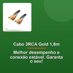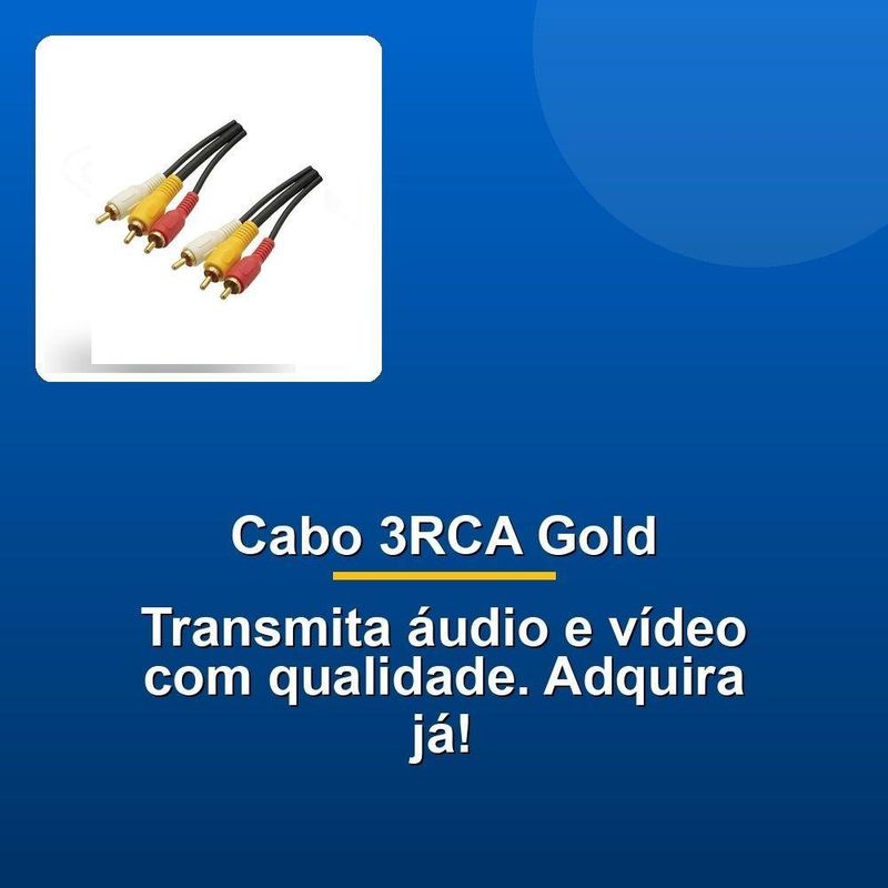 Cabo De áudio E Vídeo 3rca +3rca Gold 1,80m EmborrachadoMelhore a qualidade de sua experiência audiovisual com o Cabo de Áudio e Vídeo 3RCA + 3RCA Gold de 1,80 metros. Este cabo foi projetado para entregar desempenho superior e garantir conexões estáveis, oferecendo uma excelente solução para transmitir áudio e vídeo com alta fidelidade. Com conectores dourados, este produto proporciona maior condutividade e resistência à oxidação, assegurando durabilidade e qualidade de sinal ao longo do tempo.Fabricado com material emborrachado de alta qualidade, o cabo é resistente e flexível, permitindo manuseio fácil e proteção contra desgaste. Seu comprimento de 1,80 metros oferece liberdade e praticidade para conectar seus dispositivos, mesmo em ambientes com layouts mais desafiadores. Ideal para sistemas de som, televisores, DVD players, projetores e outros dispositivos que utilizam a conexão RCA, este cabo torna-se indispensável para quem busca uma transmissão mais eficiente e um desempenho otimizado.O grande diferencial deste cabo está na sua construção robusta e na atenção aos detalhes. Ele é o resultado de um rigoroso processo de seleção dos melhores fornecedores, garantindo que cada componente seja cuidadosamente escolhido para oferecer uma experiência confiável e de alta qualidade. Além disso, o conector dourado não apenas melhora o desempenho técnico, mas também confere um toque de sofisticação ao produto.Adquirir este cabo é investir em um acessório que combina funcionalidade, durabilidade e estilo. Nossa equipe trabalha incansavelmente para garantir que sua compra seja uma experiência agradável, priorizando a entrega rápida e eficiente. Cada etapa do processo reflete nossa paixão pela excelência e nosso compromisso em oferecer produtos que você possa confiar e se orgulhar de usar. Escolha o Cabo de Áudio e Vídeo 3RCA + 3RCA Gold e leve a qualidade do seu entretenimento para um novo patamar.Melhore a qualidade de sua experiência audiovisual com o Cabo de Áudio e Vídeo 3RCA + 3RCA Gold de 1,80 metros. Este cabo foi projetado para entregar desempenho superior e garantir conexões estáveis, oferecendo uma excelente solução para transmitir áudio e vídeo com alta fidelidade. Com conectores dourados, este produto proporciona maior condutividade e resistência à oxidação, assegurando durabilidade e qualidade de sinal ao longo do tempo.Fabricado com material emborrachado de alta qualidade, o cabo é resistente e flexível, permitindo manuseio fácil e proteção contra desgaste. Seu comprimento de 1,80 metros oferece liberdade e praticidade para conectar seus dispositivos, mesmo em ambientes com layouts mais desafiadores. Ideal para sistemas de som, televisores, DVD players, projetores e outros dispositivos que utilizam a conexão RCA, este cabo torna-se indispensável para quem busca uma transmissão mais eficiente e um desempenho otimizado.O grande diferencial deste cabo está na sua construção robusta e na atenção aos detalhes. Ele é o resultado de um rigoroso processo de seleção dos melhores fornecedores, garantindo que cada componente seja cuidadosamente escolhido para oferecer uma experiência confiável e de alta qualidade. Além disso, o conector dourado não apenas melhora o desempenho técnico, mas também confere um toque de sofisticação ao produto.Adquirir este cabo é investir em um acessório que combina funcionalidade, durabilidade e estilo. Nossa equipe trabalha incansavelmente para garantir que sua compra seja uma experiência agradável, priorizando a entrega rápida e eficiente. Cada etapa do processo reflete nossa paixão pela excelência e nosso compromisso em oferecer produtos que você possa confiar e se orgulhar de usar. Escolha o Cabo de Áudio e Vídeo 3RCA + 3RCA Gold e leve a qualidade do seu entretenimento para um novo patamar.