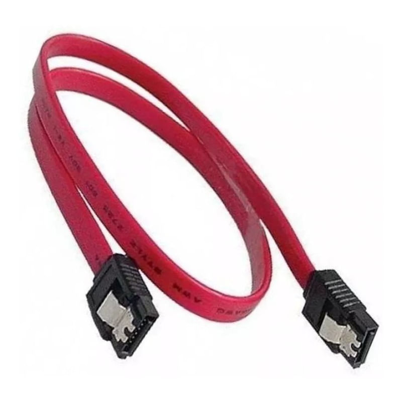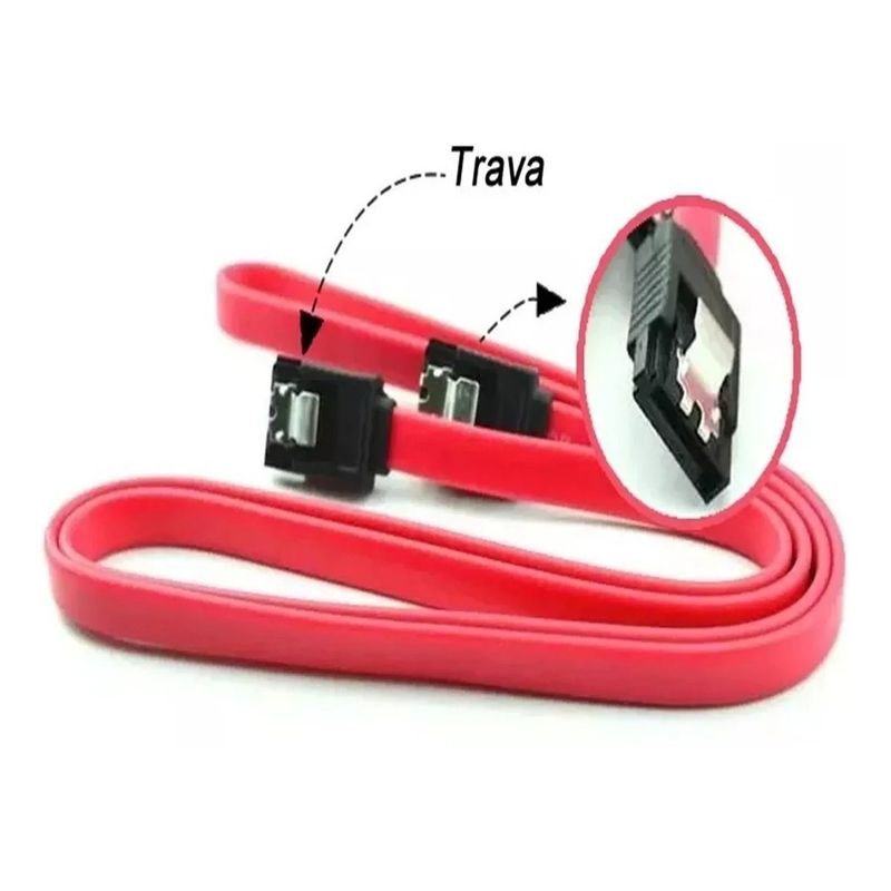 == Cabo de Dados SATA 3 ( 6gbps ) Blindado ( 7 pinos ) com trava == Tipo de interface: SATA 3 Blindagem: dupla interna Pinagem interna: 7 pinos Taxa de transferência: 6 GB/s Comprimento: 40 cm Fio: padrão 26AWG Suporta ate: 80°C / 30V Compatível com SATA I ( 1.5Gb/s ), SATA II ( 3Gb/s ), SATA III ( 6Gb/s ) Aplicação: Disco rígido, ( HD / SSD / HD-SSD ) DVD de transmissão de dados, DVD-RW, Blu-Ray, DVD leitor. Com Trava tipo clip para uma conexão mais segura. == Embalagem: 01 unidade. ==