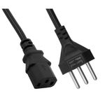 Cabo de Força 1,5 Metros certificado do Inmetro NBR 14136 Novo Padrão de Tomadas Tripolar até 10AUtilizado em gabinete, monitor, fonte atx, TV LCD, LED, TV Plasma, Fax, Impressoras para ligar a rede elétricaEmborrachado externoCondutor interno: 3 X 0,75mm2 750V 10AConectores: 1x Novo Padrão Macho Tripolar (NBR 14136) + Plug Fêmea IEC 320 C13 (utilizado na Alimentação da Fonte ATX).