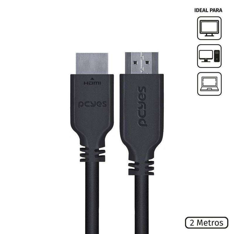 Cabo Displayport Macho Para Hdmi 2.0 Macho 2 Metros - Pdphm-2Os cabos da PCYES chegaram para determinar um novo patamar de qualidade para aqueles que buscam mais para seus equipamentos de nível profissional, unindo inovação a um custo acessível!São duas linhas completamente desenvolvidas para suprir as necessidades até do consumidor mais exigente, utilizando de design, alta tecnologia e materiais de qualidade para alcançar a excelência.Projetados com foco nos entusiastas, os cabos da PCYES possuem design exclusivo e 100% brasileiro, que combina robustez com minimalismo, além de levar em si a essência da marca, garantindo maior durabilidade e desempenho.Descrição:Este cabo é indicado para transmissão entre dispositivos Displayport e HDMI tais como: TVs, monitores, Aparelhos Blu-ray, video-games, placas de vídeo, notebooks etcDados Técnicos:Tamanho do cabo: 2 metrosMaterial do cabo: cobre puro32 AWGResolução máxima: 4K*2K (30Hz)Duplo canal de áudioVersão DisplayPort: 1.4VHDMI: 2.0Conectores HDMI macho e Displayport Macho
