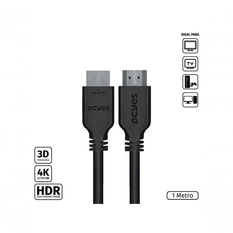 Cabo Hdmi 2.0 4k 30awg Puro Cobre 1 Metro - Phm20-1Os cabos da PCYES chegaram para determinar um novo patamar de qualidade para aqueles que buscam mais para seus equipamentos de nível profissional, unindo inovação a um custo acessível! São duas linhas completamente desenvolvidas para suprir as necessidades até do consumidor mais exigente, utilizando de design, alta tecnologia e materiais de qualidade para alcançar a excelência. Projetados com foco nos entusiastas, os cabos da PCYES possuem design exclusivo e 100% brasileiro, que combina robustez com minimalismo, além de levar em si a essência da marca, garantindo maior durabilidade e desempenho. Descrição: Este cabo é indicado para dispositivos que possuam conexão HDMI tais como: TVs, monitores, Aparelhos Blu-ray, video-games, placas de vídeo, notebooks etc Dados Técnicos: Tamanho do cabo: 1M Material do cabo: cobre puro 30 AWG Largura de banda máxima: 18Gbit/s Resolução máxima: 4K (60Hz) Máximo de canais de áudio LCPM: 32 Taxa de áudio: 1536 kHz HDR Estático Suporta 3D Possui conexão Ethernet Conector HDMI macho/machoOs cabos da PCYES chegaram para determinar um novo patamar de qualidade para aqueles que buscam mais para seus equipamentos de nível profissional, unindo inovação a um custo acessível! São duas linhas completamente desenvolvidas para suprir as necessidades até do consumidor mais exigente, utilizando de design, alta tecnologia e materiais de qualidade para alcançar a excelência. Projetados com foco nos entusiastas, os cabos da PCYES possuem design exclusivo e 100% brasileiro, que combina robustez com minimalismo, além de levar em si a essência da marca, garantindo maior durabilidade e desempenho. Descrição: Este cabo é indicado para dispositivos que possuam conexão HDMI tais como: TVs, monitores, Aparelhos Blu-ray, video-games, placas de vídeo, notebooks etc Dados Técnicos: Tamanho do cabo: 1M Material do cabo: cobre puro 30 AWG Largura de banda máxima: 18Gbit/s Resolução máxima: 4K (60Hz) Máximo de canais de áudio LCPM: 32 Taxa de áudio: 1536 kHz HDR Estático Suporta 3D Possui conexão Ethernet Conector HDMI macho/macho