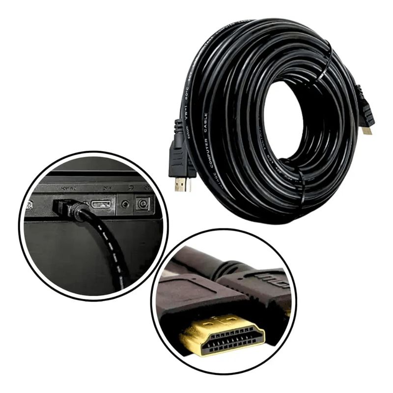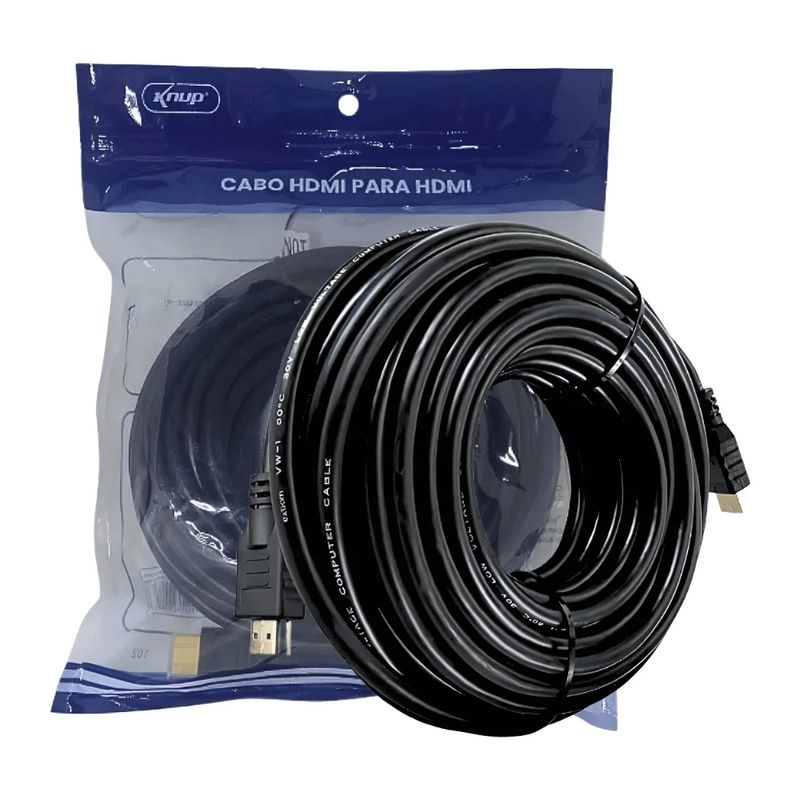Cabo HDMI Macho x Macho 10 Metros 1.4v Preto KP-YP5000 KnupO Cabo HDMI Knup KP-YP5000 é um condutor de alta qualidade projetado para transmitir sinais de áudio e vídeo digital em longas distâncias sem perda de sinal. Com 10 metros de comprimento e suporte à versão 1.4, este cabo é ideal para conectar computadores, consoles de videogame, players de Blu-ray e outros dispositivos a televisores e projetores em auditórios ou salas de reunião. Ele se destaca pela alta compatibilidade e capacidade de suportar resoluções Full HD e 4K, garantindo uma conexão confiável e durável. CaracterísticasComprimento total de 10 metros para instalações de longa distânciaVersão HDMI 1.4v suporta Full HD 1080p e resoluções 4KTransmissão de áudio e vídeo digital em alta definiçãoConectores machos em ambas as extremidadesSuporte a canal de retorno de áudio (ARC) e Ethernet (HEC)Isolamento eficiente contra interferências externasPlug and Play, não requer drivers ou configurações adicionaisInformações adicionaisMaterial do condutor em cobre de alta purezaRevestimento externo em PVC de alta resistência na cor pretaConectores banhados a ouro para melhor transmissão de sinal e resistência à corrosãoSuporta 3D e tecnologias de cores profundas (Deep Color)Compatível com todos os dispositivos com saída e entrada HDMINão possui malha de proteção externa de nylon, mas mantém a blindagem internaEmbalagem inclui: 1 Cabo HDMI Macho x Macho 10 Metros KP-YP5000
