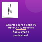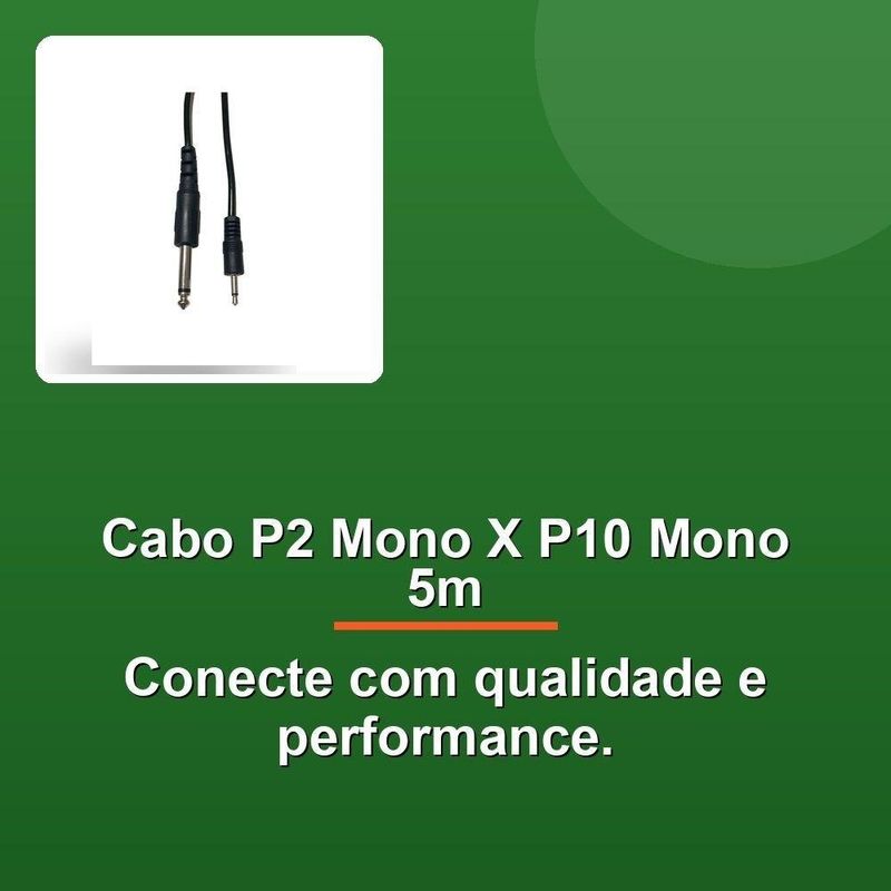 Cabo P2 Mono X P10 Mono 5m PretoSe você busca qualidade, durabilidade e funcionalidade em um único produto, o Cabo P2 Mono X P10 Mono 5 Metros Preto é a escolha ideal para suas necessidades. Construído com materiais de alta qualidade e projetado com foco nos mínimos detalhes, este cabo é a solução perfeita para conectar equipamentos de áudio com eficiência e confiabilidade.Com 5 metros de comprimento, ele oferece ampla liberdade de movimento, ideal para setups profissionais ou domésticos onde a mobilidade é essencial. Sua cor preta discreta combina facilmente com qualquer ambiente ou equipamento, proporcionando uma estética limpa e profissional. Equipado com um Plug P2 Mono em uma extremidade e um Plug P10 Mono na outra, este cabo garante conexões estáveis e uma transmissão de áudio sem ruídos ou interferências, permitindo que você aproveite ao máximo a qualidade sonora de seus dispositivos.O diferencial deste produto está em nosso rigoroso processo de seleção e controle. Cada cabo é desenvolvido com atenção máxima à durabilidade e ao desempenho, resultando em um item que não apenas cumpre sua função, mas supera expectativas. Utilizamos as melhores práticas do setor para entregar um produto que se destaca pela inovação e confiabilidade, refletindo nosso compromisso com a satisfação do cliente.Confiar no Cabo P2 Mono X P10 Mono 5 Metros Preto é optar por um produto que foi cuidadosamente projetado para atender a altos padrões de qualidade. Seja para uso em estúdios, apresentações ao vivo ou no dia a dia, este cabo é uma ferramenta indispensável para quem valoriza desempenho e excelência. Escolha um produto que alia tecnologia, resistência e design, e transforme sua experiência de áudio em algo verdadeiramente especial.Se você busca qualidade, durabilidade e funcionalidade em um único produto, o Cabo P2 Mono X P10 Mono 5 Metros Preto é a escolha ideal para suas necessidades. Construído com materiais de alta qualidade e projetado com foco nos mínimos detalhes, este cabo é a solução perfeita para conectar equipamentos de áudio com eficiência e confiabilidade.Com 5 metros de comprimento, ele oferece ampla liberdade de movimento, ideal para setups profissionais ou domésticos onde a mobilidade é essencial. Sua cor preta discreta combina facilmente com qualquer ambiente ou equipamento, proporcionando uma estética limpa e profissional. Equipado com um Plug P2 Mono em uma extremidade e um Plug P10 Mono na outra, este cabo garante conexões estáveis e uma transmissão de áudio sem ruídos ou interferências, permitindo que você aproveite ao máximo a qualidade sonora de seus dispositivos.O diferencial deste produto está em nosso rigoroso processo de seleção e controle. Cada cabo é desenvolvido com atenção máxima à durabilidade e ao desempenho, resultando em um item que não apenas cumpre sua função, mas supera expectativas. Utilizamos as melhores práticas do setor para entregar um produto que se destaca pela inovação e confiabilidade, refletindo nosso compromisso com a satisfação do cliente.Confiar no Cabo P2 Mono X P10 Mono 5 Metros Preto é optar por um produto que foi cuidadosamente projetado para atender a altos padrões de qualidade. Seja para uso em estúdios, apresentações ao vivo ou no dia a dia, este cabo é uma ferramenta indispensável para quem valoriza desempenho e excelência. Escolha um produto que alia tecnologia, resistência e design, e transforme sua experiência de áudio em algo verdadeiramente especial.