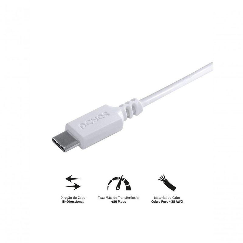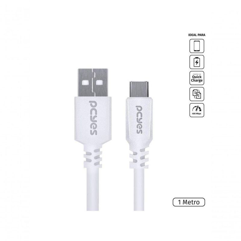 Cabo Para Celular Usb A 2.0 Para Usb Tipo C 1 Metro Branco - Puacb-01Dados Técnicos 1 metro Bi-Direcional Taxa Máx. de Transferência: 480 Mpbs Material do Cabo: Cobre Puro 28 AWG Corrente Máxima: 5V 3A (15W) Compatível com: LG Q Note+, Q7+ LG V35 ThinQ LG G6, G7 ThinQ, G8S ThinQ Motorola X4 Motorola Linha Z: Z2 ou superior Motorola Linha G: G6 ou superior Motorola One Asus Zenfone 5 Samsung Linha Galaxy A5 ou superior, S8 ou superior e Note 8 ou superior Xiaomi Linha Redmi: Note 7 ou superior Xiaomi Linha Mi: 5 ou superior Xiaomi Mi A3 *entre outros modelos Disponível também nos tamanhos: 0,5 metro 2 metrosDados Técnicos 1 metro Bi-Direcional Taxa Máx. de Transferência: 480 Mpbs Material do Cabo: Cobre Puro 28 AWG Corrente Máxima: 5V 3A (15W) Compatível com: LG Q Note+, Q7+ LG V35 ThinQ LG G6, G7 ThinQ, G8S ThinQ Motorola X4 Motorola Linha Z: Z2 ou superior Motorola Linha G: G6 ou superior Motorola One Asus Zenfone 5 Samsung Linha Galaxy A5 ou superior, S8 ou superior e Note 8 ou superior Xiaomi Linha Redmi: Note 7 ou superior Xiaomi Linha Mi: 5 ou superior Xiaomi Mi A3 *entre outros modelos Disponível também nos tamanhos: 0,5 metro 2 metros