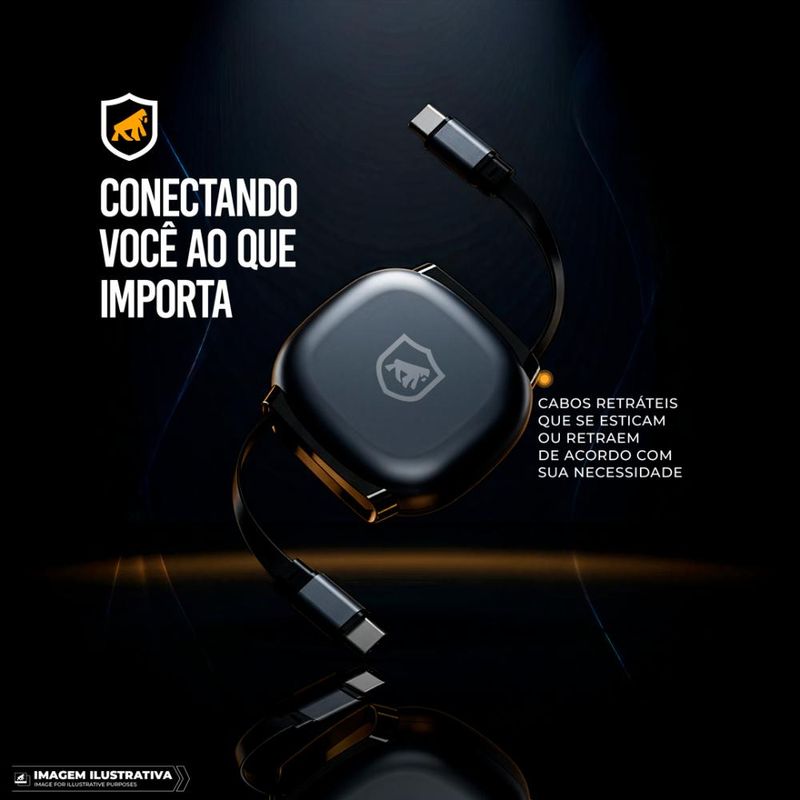 Potência máxima, tamanho mínimo. O cabo que acompanha o seu ritmo.O Victus Retrátil Tipo C da Gshield foi desenvolvido para quem não abre mão de velocidade, praticidade e um design inteligente no dia a dia. Compacto por fora e extremamente poderoso por dentro, ele entrega carregamento turbo de até 100W e transferência de dados rápida (até 480 Mb/s), garantindo conexão eficiente entre notebooks, celulares, tablets, centrais automotivas, caixas de som, TVs e muito mais.Design retrátil premium: leve, compacto e sempre prontoO corpo retrátil com acabamento sofisticado reduz drasticamente o volume do cabo, tornando-o perfeito para carregar no bolso, mochila, carro ou estação de trabalho.O sistema de roldanas internas permite movimentação individual de cada cabo, evitando travamentos e aumentando a durabilidade.Você puxa o quanto precisa. Ele retrai o quanto você quiser. Simples assim.Carregamento Turbo 100W: potência sem limitesCom suporte para carregamento rápido de até 100W, o Victus entrega energia com segurança e eficiência para os mais diversos dispositivos:Notebooks compatíveis (incluindo modelos USB-C)Smartphones TabletsPower banksCentrais multimídia automotivasIdeal para quem precisa de agilidade no trabalho, estudos, viagens ou no trânsito.Conexão estável, rápida e universalA tecnologia USB-C / USB-C garante compatibilidade ampla e desempenho consistente, permitindo recarregar dispositivos e transferir dados com total estabilidade, sem quedas de conexão ou perda de desempenho.Feito para durarO Victus combina materiais premium, estrutura interna reforçada e mecanismo retrátil de alta precisão — um conjunto que prolonga a vida útil do cabo e evita rompimentos ou travamentos comuns em modelos retráteis tradicionais.Perfeito para quem vive em movimentoSeja no escritório, no carro, em viagens ou no dia a dia, o Victus foi pensado para ser o cabo que resolve problemas sem ocupar espaço.Leve, acessível, poderoso e retrátil: é o cabo que te conecta ao que importa.ESPECIFICAÇÕESMarca: GshieldModelo: Victus Retrátil Tipo-C / Tipo-CPotência: 100W (carregamento turbo)Velocidade de transferência: até 480 Mb/sCompatibilidade: sistemas multimídia automotivos, smartphones, tablets, notebooks, caixas de som, TVs e dispositivos USB-CComprimento: até 1 metroDimensões do estojo: 6,3 × 1,2 cmSistema retrátil: movimentação independente de cada caboCor: PretoConstrução: corpo compacto, resistente e protegido contra danos externosConteúdo da embalagem: 1 cabo retrátil Victus Tipo C / Tipo C