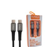 Cabo Carga e Dados Celular Tipo C / Tipo C - Kaidi KD-19CC CARACTERÍSTICAS DO PRODUTO: - Marca: Kaidi - Modelo: KD-19CC - Entrada: USB C - Saída: USB C - Comprimento: 1 Metro - Potência Máxima: 60w - Material: Cabo com revestimento trançado + liga de alumínio - Carregamento Turbo e estável - Resistente a flexão e rachaduras - Blindagem de alumínio interno, resistente a ferrugem CONTEÚDO DA EMBALAGEM: 1x Cabo Kaidi KD-19CC