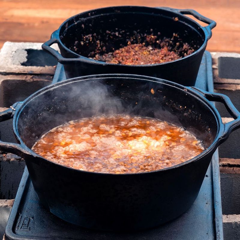 Caçarola Artesanal Tampa Metálica Panela Mineira 36cm 11L A Caçarola Artesanal Alça de Ferro e Tampa Metálica da Panela Mineira possui um design aperfeiçoado, fundo reto preto, bordas alongadas e tampa moderna. Sua excelente distribuição e retenção de calor, característico do ferro fundido, a torna ideal para assar, grelhar, fritar e cozinhar de maneira lenta e com muita maciez, sendo muito utilizada no preparo de arroz, feijão, carnes, legumes, caldos, ensopados e mais. A Tampa Metálica leve facilita o dia a dia na cozinha, pois não absorve odores e não deixa resíduos. Onde Usar: Pode ser utilizado em fogões a gás, a lenha, elétricos, cooktops de indução, vitro-cerâmicos, fornos, grills, churrasqueiras e fogo de chão. Não aconselhamos a usar a tampa no forno, devido ao batoque ter partes em polipropileno. Orientação de Uso e Conservação:Antes do primeiro uso: Lave com água e sabão, seque bem com um pano e leve ao fogo para remover toda a umidade. Já vem pronta para uso, então não precisa ser curada. Guarde em um local seco. Após cada uso: Lave com água e sabão, usando uma esponja ou escova para remover todos os resíduos de alimentos. Se restarem resíduos, ferva água com um pouco de detergente para soltá-los. Pintura: Revestimento atóxico que garante durabilidade e proteção prolongada, sem causar nenhum dano à saúde. Características Técnicas e Medidas:Altura Sem Tampa: 13,5cm.Altura Com Tampa: 19cm.Material: Ferro Fundido.Modelo: Redondo.Diâmetro: 36cm.Linha: Artesanal.Litragem: 11L.Peso: 11,4Kg.Tampa: Aço.Alças: Ferro. Itens Inclusos:01 Caçarola Artesanal Panela Mineira 36cm 11L.01 Tampa Metálica em Aço 36cm.01 Batoque em Platinela. Código: 238PMProdutoLojaPlast.