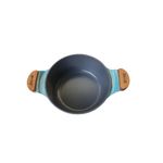 Caçarola Azul Turquesa Antiaderente Cerâmica Javali AM 18cm A panela antiaderente é fabricada com outros materiais e ganham uma cobertura em cerâmica, garantindo assim um revestimento atóxico e antiaderente, capaz de repelir certas substâncias. Por isso, a comida não gruda nela. É resistente a altas temperaturas e a arranhões. As panelas em cerâmica antiaderente contam com uma camada que cobre o seu material e evita que o alimento grude em seu interior. Dessa forma, contribuem para uma culinária saudável, dispensando o uso excessivo de gordura ou óleos vegetais. Para quem gosta de um peixe ou filé de frango grelhado, ou não dispensa um omelete delicioso, não pode deixar de ter uma em sua cozinha. Manutenção e Dicas: 1. Não use metal na sua panela de cerâmica. 2. Evite grandes mudanças de temperatura. (Levar uma panela quente para a água fria pode fazer com que a panela deforme.) 3. Limpe suas panelas com esponjas que não causem riscos. 4. Não é ideal para máquina lava louças. 5. Evite altas temperaturas de cozimento. 6. Não deixe a panela vazia no fogo. Especificações Técnicas: Revestimento Interno: Antiaderente em Cerâmica cor Cinza. Revestimento Externo: Alumínio Fundido Azul Turquesa. Alça Madeira Tampa de Vidro. Litragem: 1,7L. Largura: 18cm. Altura: 10cm. Itens Inclusos: 01 Caçarola Azul Turquesa Antiaderente Cerâmica Javali AM 18cm. 01 Tampa de Vidro Temperado Avulsa 18cm. Código: 583-JAV.