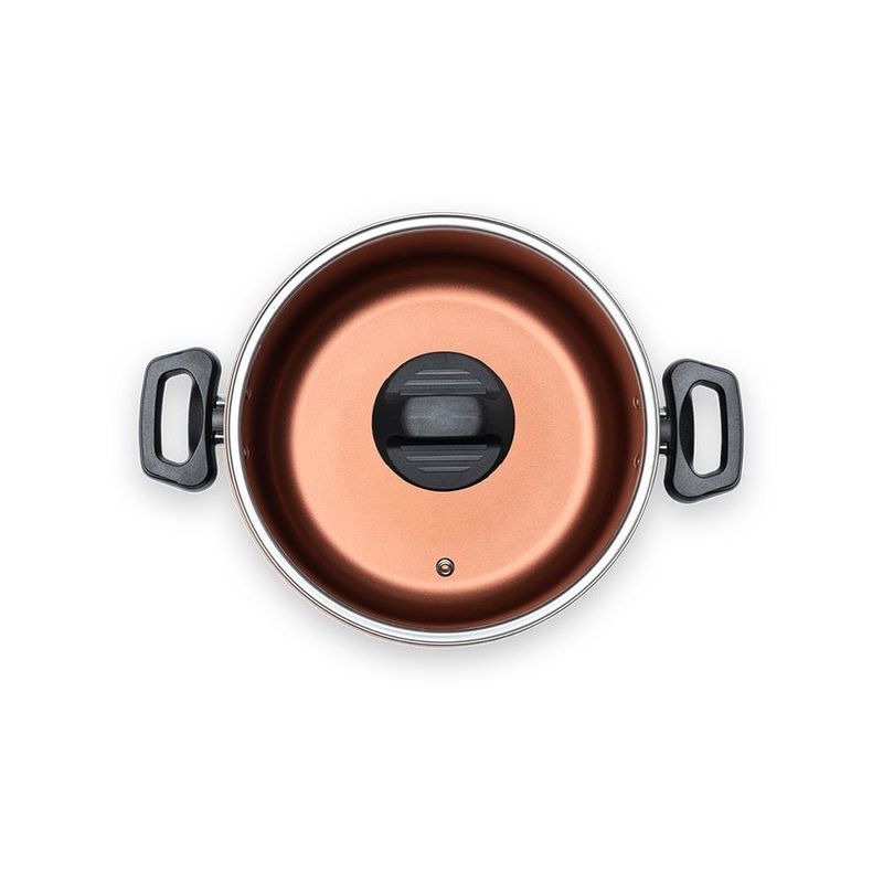 A Caçarola Brinox Topázio 22cm 3,45L une resistência, modernidade e praticidade para o dia a dia. Produzida em alumínio, garante melhor condução de calor, resultando em um cozimento uniforme e mais rápido. Seu revestimento interno antiaderente Pro-flon possui classificação A (ótima) pelo Inmetro e é PFOA Free, evitando que os alimentos grudem e facilitando a limpeza, mesmo com pouco uso de óleo.A tampa de vidro temperado com acabamento em aço inox permite acompanhar o preparo sem perder nutrientes, além de contar com saída de vapor para maior segurança. Os cabos e pomel em baquelite não aquecem, proporcionando conforto e proteção no manuseio. Com design sofisticado na cor Cinza Range, a linha Topázio é perfeita para quem busca elegância e desempenho em um único utensílio de cozinha.