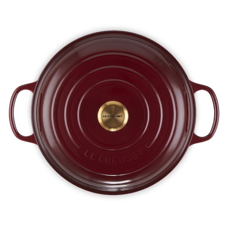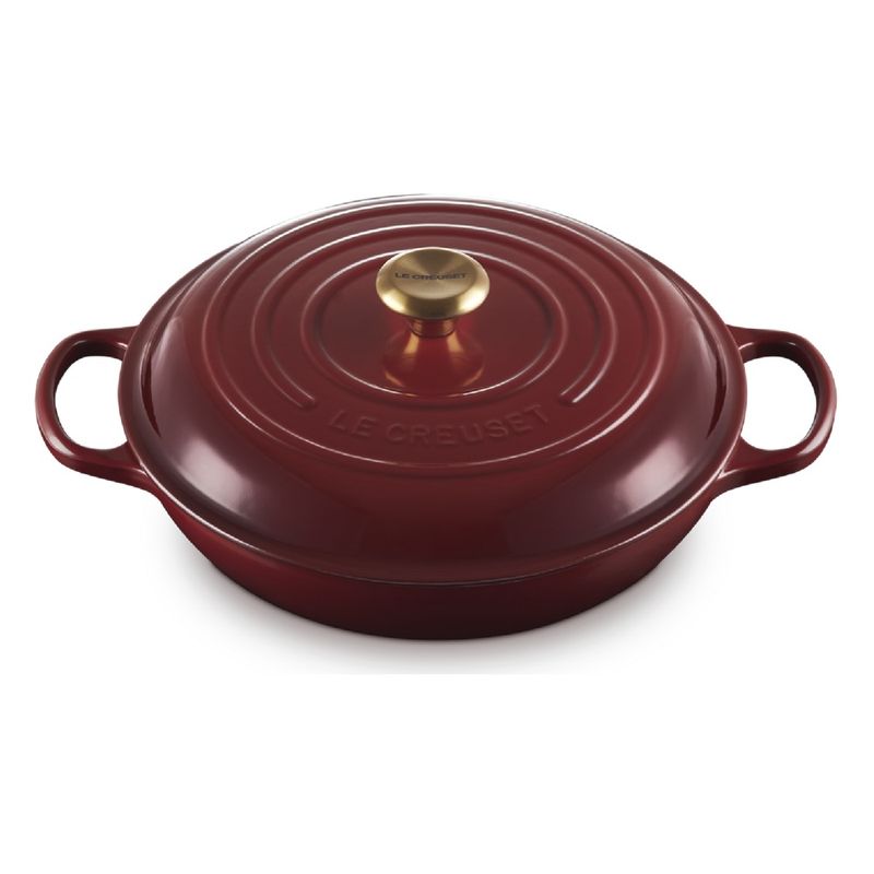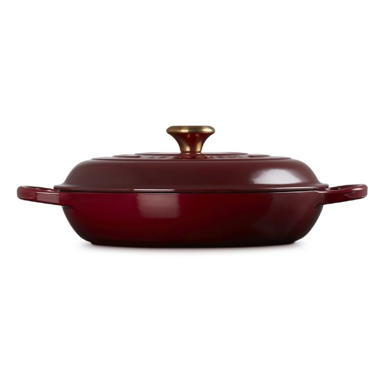 A Caçarola Buffet Signature da Le Creuset alia funcionalidade, desempenho térmico e elegância. Produzida em ferro fundido esmaltado, oferece distribuição e retenção de calor superiores, mantendo os alimentos quentes ou frios por mais tempo. Versátil, pode ir do forno diretamente à mesa como peça de servir ou compor a decoração da cozinha com sofisticação. - Destaques:• Ferro fundido esmaltado com excelente distribuição e retenção de calor• Pronta para uso, não requer tempero• Esmalte durável, resistente a manchas, lascas, rachaduras e opacidade• Tampa com vedação que circula o vapor e devolve a umidade aos alimentos• Pegador em aço inoxidável seguro para uso em qualquer temperatura do forno• Compatível com lava-louças e utensílios de metal• Pode ser usada do preparo à apresentação dos pratos - Especificações:• Cor: rhone• Material: ferro fundido• Capacidade: 4,7 L• Fonte de calor: vitrocerâmico, indução, elétrico, gás, radiante, grill e forno• Altura: 14 cm• Largura: 32 cm• Comprimento: 40 cm• Modo de lavagem: lava-louças ou lavagem manual - Observações:• Pode ser levada do forno diretamente à mesa• Evite choques térmicos para preservar o esmalte• As imagens são meramente ilustrativas