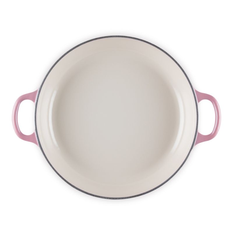 A Caçarola Buffet Signature Petal Le Creuset combina funcionalidade e estética em uma peça pensada para ir diretamente do forno à mesa. Produzida em ferro fundido esmaltado, oferece excelente distribuição e retenção de calor, mantendo os pratos quentes ou frios por mais tempo. Seu design elegante permite que seja utilizada tanto como utensílio de preparo quanto como peça de servir ou elemento decorativo na cozinha. - Destaques:• Ferro fundido com distribuição e retenção de calor superiores• Exterior esmaltado resistente, que ajuda a prevenir rachaduras e lascas• Interior esmaltado na cor areia, vitrificado, que não absorve odores nem sabores• Tampa com vedação eficiente, promovendo circulação constante de calor e umidade• Alças espaçosas que permitem o uso de luvas grossas para transporte seguro• Pegador dourado em aço inoxidável, resistente a qualquer temperatura do forno - Especificações:• Cor: berry• Estilo do pegador: dourado• Material: ferro fundido• Comprimento: 26 cm• Largura: 26 cm• Altura: 9,8 cm• Fontes de calor: vitrocerâmico, indução, elétrico, gás, radiante, grill e forno - Observações:• Modo de lavagem: lavagem à mão• Pode ser utilizada como peça de servir diretamente à mesa