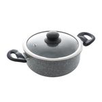 Caçarola de Indução com Tampa de Vidro 22cm Granilite Cinza Contém: 1 CaçarolaForno: NãoFogão: SimMedidas Produto: Altura 14,00cm x Largura 22,00cm x Comprimento 36,50cmPeso: 1,12KgCor: CinzaMaterial: AlumínioLavar com detergente neutro, esponja macia e secar imediatamente.