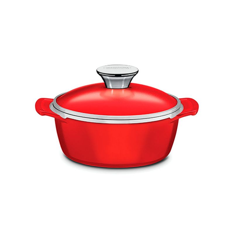 Cocotte em alumínio forjado, com revestimento interno de antiaderente Starflon Ceramic e externo com revestimento de poliéster siliconado. Internamente a cocotte possui quatro camadas, sendo a base reforçada com partículas cerâmicas. Tem maior durabilidade, maior antiaderência e alta resistência à corrosão. Maior espessura do revestimento da cocotte para proporcionar melhor cozimento dos alimentos e maior economia, pois o calor se espalha de forma uniforme e rápida. O pegadorda tampa é deaço inox para maior durabilidade. A Cocotte é perfeita para servir porções individuais ou de entrada, ou até mesmo para compor uma mesa, irresistíveis até para decoração. A Cocotte une estilo e praticidade. Com ela até os cozinheirosamadores se tornam grandes chefs. Pode ser utilizada no fogão a gás, elétrico e vitrocerâmico. Pode ir à máquina de lavar louças. Referência: 20940/710 Fabricante: Tramontina