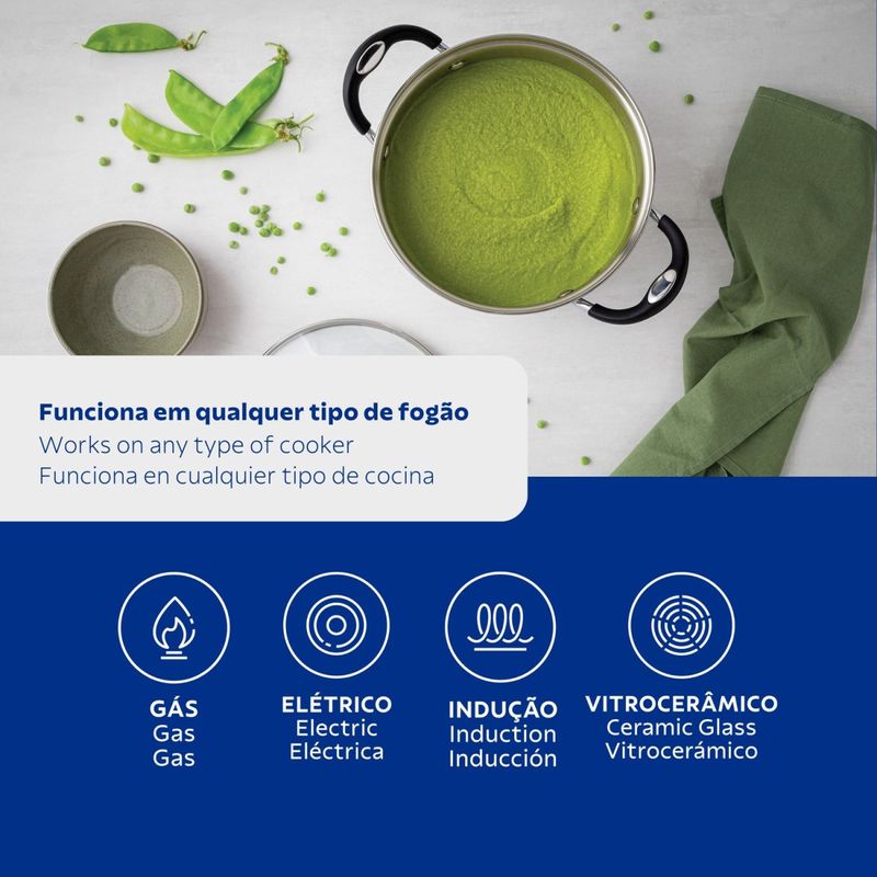 Caçarola Rasa Tramontina Astro Silicone Funda Aço Inox Fundo Triplo Tampa de Vidro 16 cm 1,4 L Tramontina - Caçarola Rasa Tramontina Astro Silicone Funda Aço Inox Fundo Triplo Tampa de Vidro 16 cm 1,4 L à muito bom contar com produtos práticos e ao mesmo tempo econômicos na nossa cozinha. Com a Caçarola Funda Tramontina Astro Silicone em Aço Inox com Fundo Triplo 16 cm de diâmetro você vai ter um produto que auxilia nas tarefas diárias. Perfeita para preparar suas melhores receitas, ela possui tecnologia de ponta. Com fundo triplo (aço inox + alumÃnio + aço inox), ela distribui o calor uniformemente, cozinhando mais rápido os alimentos com menos gasto de energia. Além de mantê-los quentinhos por mais tempo! à super fácil de limpar e versátil, podendo ser utilizada em diferentes tipos de fogões. Acompanha tampa de vidro com saÃda de vapor e possui 16 cm de diâmetro, ideal para as exigências que encontrar na cozinha. Ela ainda garante segurança: os cabos, alças e pegadores são revestidos em silicone antitérmico, tornando o manuseio mais macio e confortável. à uma peça essencial que proporciona estilo e praticidade no dia-a-dia. Mais saudável: por ser feita de aço inoxidável, a panela Tramontina não libera nenhum tipo de resÃduo nas suas receitas. Fácil de usar: uma panela prática para todas as suas receitas e que faz bonito em qualquer tipo de fogão: gás, elétrico, vitrocerâmico e indução. Tampa de vidro e encaixe perfeito. As alças e pegadores tem revestimento em silicone antitérmico tornando a pega mais macia e confortável. Mais durável: o inox Tramontina é uma matéria-prima nobre, resistente e que vai fazer bonito por muito mais tempo na cozinha. Economiza tempo e energia: o segredo está no fundo triplo (aço inox + alumÃnio + aço inox), que distribui o calor uniformemente, proporcionando um cozimento mais rápido. Por isso, você pode manter o fogo baixo durante todo o preparo e, assim, poupar energia. Fácil de limpar: deixar sua panela brilhando é simples, você só precisa de água, sabão e uma esponja macia. Se preferir, é só colocar na máquina de lavar.Pode ser utilizada nos fogões: gás, elétrico, vitrocerâmico e indução. Cuidados com o produto A capacidade volumétrica máxima para cozimento é de 3/4 da capacidade total da peça.Antes do uso, remova as eventuais etiquetas presentes no produto, e em seguida recomendamos lavar. Use uma fonte de calor sempre baixa, para evitar que o alimento grude no fundo do caldeirão. O fundo triplo distribui uniformemente o calor, não sendo necessário o fogo alto. E, além disso, você economiza energia. Quando o caldeirão for utilizado no fogão a gás, a chama não deve ultrapassar a base do caldeirão. No caso de uso de chapa elétrica, a chapa deverá ter diâmetro igual ou inferior ao do caldeirão. Não aqueça o alimento colocando um caldeirão ou qualquer utensÃlio do mesmo diâmetro um sobre o outro. Esse procedimento é perigoso, pois cria vácuo e impossibilita a retirada. Não deixe o caldeirão vazio sobre uma fonte de calor. Deixe caldeirões quentes somente em superfÃcies resistentes ao calor. Sempre dissolva o sal em água fervendo ou com os alimentos, mexendo os ingredientes no inÃcio do cozimento. Alguns alimentos que possuem amido, como massa e arroz, poderão deixar manchas na parte interna do caldeirão durante o cozimento. Para remover facilmente as manchas, passe um pano umedecido com suco de limão ou vinagre, ou use a pasta Tramontina para polir e remover manchas. Evite deixar alimento no caldeirão por muito tempo, o sal também pode provocar manchas e corrosão. Para que o caldeirão de aço inox fique sempre bonito e com brilho, recomendamos que seja lavado somente com detergente neutro e esponja. Além disso, nas partes foscas do caldeirão pode-se utilizar o lado mais abrasivo da esponja com saponáceo lÃquido, para remover as manchas mais difÃceis. Depois da lavagem, sempre que possÃvel, enxágue o caldeirão com água quente e seque-a imediatamente, para que ela mantenha o brilho original, pois o cloro e as substâncias contidas na água podem deixar manchas no caldeirão. Nos caldeirões/tampas cujo sistema de fixação utiliza parafuso, com o tempo de uso, ele poderá afrouxar-se. Recomenda-se, por segurança, o reaperto. As alças, pegadores e cabos aquecem durante o cozimento. Aconselhamos o uso de luvas ou pano no manuseio. à necessário cuidado ao manusear o produto, principalmente com alimentos ou lÃquidos quentes. Para sua segurança, utilize somente até a capacidade máxima indicada no fundo do produto. Garantia 90 dias de garantia legal para vÃcios ou defeitos de fabricação. - Produto com certificação compulsória certificada pela OCP 0104- PCN DO BRASIL, registro 001470/2018, conforme portaria INMETRO 499/2021. - Características Gerais do Produto: Garantia: • 3 Meses