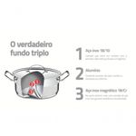 Caçarola Rasa Tramontina Professional Aço Inox Sem Tampa 45cm Todo chef precisa da Caçarola Rasa Tramontina Professional em Aço Inox com Fundo Triplo sem Tampa 45 cm de diâmetro 35 L! Escolha certa para toda cozinha , é totalmente produzida em aço inox e mantém os alimentos saudáveis por não soltar resíduos. Além disso, possui tecnologia de fundo triplo (aço inox + alumínio + aço inox), que distribui o calor uniformemente, proporcionando um cozimento mais rápido, economizando energia e deixando os alimentos aquecidos por mais tempo. Perfeita para suas necessidades na cozinha, ela possui alças longas fixadas por solda-ponto, que garante mais resistência e um manuseio mais confortável. Seu visual moderno e o acabamento com faixa satinada e alto brilho, fazem dela uma peça que impressiona. É prática e versátil, podendo ser utilizada em fogões à gás, elétrico, vitrocerâmico e indução. Ela vai impressionar até os chefs mais experientes!Recomendações de Uso:A capacidade volumétrica máxima para cozimento é de 3/4 da capacidade total da peça.Use uma fonte de calor brando para evitar que o alimento grude no fundo da caçarola.O fundo triplo distribui uniformemente o calor, não sendo necessário o fogo alto. E, além disso, você economiza energia.Quando a caçarola for utilizada no fogão a gás, a chama não deve ultrapassar a base da caçarola. No caso de uso de chapa elétrica, a chapa deverá ter diâmetro igual ou inferior ao da caçarola.Sempre dissolva o sal em água fervendo ou com os alimentos, mexendo os ingredientes no início do cozimento.Não aqueça o alimento colocando uma caçarola do mesmo diâmetro sobre a outra. Esse procedimento é perigoso, pois cria vácuo e impossibilita a retirada do mesmo.Alguns alimentos que possuem amido, como massa e arroz, poderão deixar manchas na parte interna da caçarola durante o cozimento. Para remover facilmente as manchas, passe um pano umedecido com suco de limão ou vinagre, ou use a pasta de polir inox Tramontina.Evite deixar alimento na caçarola por muito tempo; o sal também pode provocar manchas.Para que a caçarola de aço inox fique sempre bonita e com brilho, recomendamos que seja lavada somente com detergente e esponja. A Tramontina desenvolveu uma pasta especial para polir e remover manchas nos produtos de aço inoxidável, que está disponível nos principais pontos de venda.Depois da lavagem, sempre que possível, enxágue a caçarola com água quente e seque-a imediatamente, para que ela mantenha o brilho , pois o cloro e as substâncias contidas na água podem deixar manchas na caçarola.Não deixe a caçarola vazia sobre uma fonte de calor.Deixe as caçarolas quentes somente em superfícies resistentes ao calor.Os cabos de inox aquecem durante o cozimento, por isso use luvas durante o manuseio.Informações Adicionais:- Acabamento com faixa satinada e alto brilho;- Cabos e alças fixados por solda-ponto, com maior reforço;- Alças longas e cabos tubulares em aço inox para manuseio ;- Totalmente feita de aço inox, não solta nenhum resíduo nos alimentos, mantendo-os saudáveis;- O fundo triplo (aço inox + alumínio + aço inox) distribui o calor uniformemente, proporcionando um cozimento mais rápido e uniforme, economizando energia e deixando os alimentos aquecidos por mais tempo. ;
