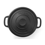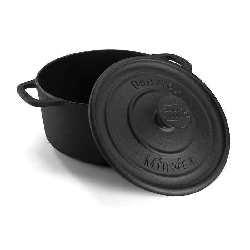 Caçarola Redonda Estilo Ferro Panela Mineira 20x15,5cm 2,9L A Caçarola Estilo Redonda Alça e Tampa de Ferro da Panela Mineira possui um design aperfeiçoado, fundo reto preto, bordas alongadas e tampa moderna. Sua excelente distribuição e retenção de calor, característico do ferro fundido, a torna ideal para assar, grelhar, fritar e cozinhar de maneira lenta e com muita maciez, sendo muito utilizada no preparo de arroz, feijão, carnes, legumes, caldos, ensopados e mais. A tampa de ferro possui excelente vedação, promovendo a circulação constante do calor e umidade. Obs: É inteiramente produzida em ferro fundido, incluindo as alças e a tampa. Dessa forma, recomendamos que o produto seja sempre manuseado com o auxílio de luvas térmicas ou panos. Onde usar: Pode ser utilizada em fogões a gás, a lenha, elétricos, cooktops de indução, vitro-cerâmicos, fornos, grills, churrasqueiras e fogo de chão. Orientação de Uso e Conservação:Antes do primeiro uso: Lave com água e sabão, seque bem com um pano e leve ao fogo para remover toda a umidade. Já vem pronta para uso, então não precisa ser curada. Guarde em um local seco. Após cada uso: Lave com água e sabão, usando uma esponja ou escova para remover todos os resíduos de alimentos. Se restarem resíduos, ferva água com um pouco de detergente para soltá-los. Pintura: Revestimento atóxico que garante durabilidade e proteção prolongada, sem causar nenhum dano à saúde. Características Técnicas e Medidas:Material: Ferro Fundido.Alças: Alça de Ferro.Modelo: Redonda.Diâmetro: 20cm.Altura: 15,5cm.Litragem: 2,9L.Peso: 4,35Kg.Linha: CHEF.Chapa: Lisa. Itens Inclusos:01 Caçarola Redonda Estilo Preta Panela Mineira 20x15,5cm 2,9L.01 Tampa em Ferro Fundido com Batoque em Ferro. Código: 5004PMProdutoLojaPlast.