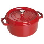A caçarola STAUB é insuperável para cozimento de carnes e legumes de maneira lenta com uma maciez perfeita, e também para cozinhar ensopados e sopas. O ferro fundido possui qualidades excepcionais de retenção de calor pois a panela aquece uniformemente. A tampa inovadora apresenta pequenos picos no interior que liberam continuamente líquido condensado de volta para os alimentos, produzindo resultados úmidos, aromáticos e saborosos. O interior em esmalte preto fosco especial da STAUB e a tampa com sistema de irrigação garantem um assado dourado perfeito para alimentos imprimindo melhor sabor. Com seu requintado acabamento em esmalte, cada peça transita lindamente da cozinha para a mesa. De comida caseira a jantares suntuosos, todos os pratos são especiais quando servidos no STAUB. As panelas de ferro fundido esmaltado da STAUB são a escolha dos melhores chefs do mundo. Com durabilidade excepcional, é perfeito para o uso diário em cozinhas domésticas gourmet e restaurantes de prestígio em todo o mundo. O ferro fundido pode ser aquecido ou resfriado a temperaturas extremas portanto essas panelas podem ser utilizadas como coolers. Pode ser utilizado em todas as fontes de calor, incluindo a indução. Resistente a riscos e ferrugem. Pode ser levado inteiramente ao forno pois seu puxador de latão ou niquelado é resistente ao calor até 250 °C. Além de todos esses benefícios, o ferro é um material altamente sustentável por ser durável e reutilizável. Construídas para durar uma vida, essas peças de herança podem ser transmitidas de geração em geração. - Especificações: • Material Ferro fundido• Cor Vermelho cereja• Tamanho 24 cm• Comprimento: 30,3cm• Altura: 15,3cm• Largura: 24cm• Fontes de calor Fogão a gás - Forgão elétrico - Fogão a indução - Forno