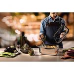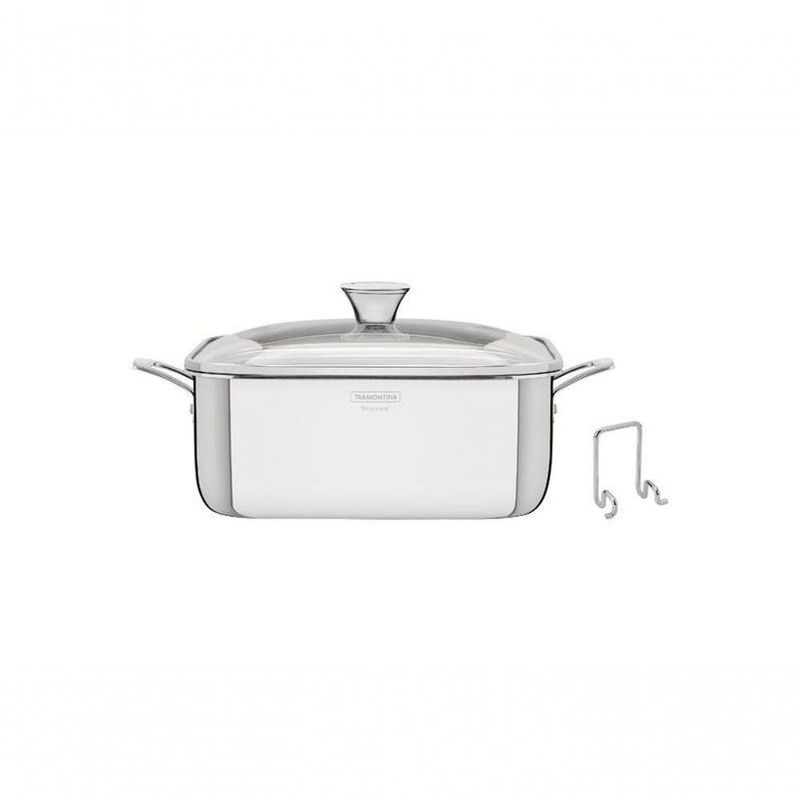 Caçarola Tramontina Grano Quadrada Aço Inox Com Suporte Para Tampa De Vidro 7,3 LitrosPrepare deliciosas receitas com a Caçarola Tramontina Quadrada em Aço Inox Corpo triplo com Tampa da linha Grano 7,3 litros ;e leve à mesa toda beleza que uma panela de inox oferece, com design super moderno e cheio de estilo. Com ela você alia praticidade, estilo, bom gosto e beleza na hora de preparar os alimentos para você e sua família. Seu corpo triplo (aço inox + alumínio + aço inox), possui tecnologia que proporciona cozimento mais rápido e uniforme dos alimentos e contribui para que permaneçam quentinhos por muito mais tempo. Com seu design diferenciado totalmente em aço inox não solta resíduos nos alimentos. Possui tampa com encaixe perfeito e pode ser utilizado em fogões a gás, elétrico, vitrocerâmico e indução, bem como ser levado à máquina de lavar diariamente sem comprometer sua eficiência e qualidade. É muito mais economia, saúde, tecnologia e lindos momentos para você e sua família. Acompanha suporte para tampa.Recomendações de Uso:- Use uma fonte de calor brando para evitar que o alimento grude no fundo da caçarola.- O fundo triplo distribui uniformemente o calor, não sendo necessário o fogo alto. E, além disso, você economiza energia. - Quando a caçarola for utilizada no fogão a gás, a chama não deve ultrapassar a base da caçarola. No caso de uso de chapa elétrica, a chapa deverá ter diâmetro igual ou inferior ao da caçarola. - Sempre dissolva o sal em água fervendo ou com os alimentos, mexendo os ingredientes no início do cozimento.- Não aqueça o alimento colocando uma caçarola do mesmo diâmetro sobre a outra. Esse procedimento é perigoso, pois cria vácuo e impossibilita a retirada do mesmo. - Alguns alimentos que possuem amido, como massa e arroz, poderão deixar manchas na parte interna da caçarola durante o cozimento. Para remover facilmente as manchas, passe um pano umedecido com suco de limão ou vinagre, ou use a pasta de polir inox Tramontina. - Evite deixar alimento na caçarola por muito tempo; o sal também pode provocar manchas.- Para que a caçarola de aço inox fique sempre bonita e com brilho, recomendamos que seja lavada somente com detergente e esponja. A Tramontina desenvolveu uma pasta especial para polir e remover manchas nos produtos de aço inoxidável, que está disponívelnos principais pontos de venda. - Depois da lavagem, sempre que possível, enxágue a caçarola com água quente e seque-a imediatamente, para que ela mantenha o brilho , pois o cloro e as substâncias contidas na água podem deixar manchas na caçarola.- Não deixe a caçarola vazia sobre uma fonte de calor. - Deixe as caçarolas quentes somente em superfícies resistentes ao calor. - Os cabos de inox aquecem durante o cozimento, por isso use luvas durante o manuseio.Informações Adicionais:- Mais saudável: por ser feita de aço inoxidável, a panela Tramontina não libera nenhum tipo de resíduo nas suas receitas. - Fácil de usar: uma panela prática para todas as suas receitas e que faz bonito em qualquer tipo de fogão: gás, elétrico, vitrocerâmico e indução. Ainda possui tampa com saída de vapor e encaixe perfeito. - Mais durável: o inox Tramontina é uma matéria-prima nobre, resistente e que vai fazer bonito por muito mais tempo na cozinha. - Economiza tempo e energia: o segredo está no corpo triplo (aço inox + alumínio + aço inox), que distribui o calor uniformemente, proporcionando um cozimento mais rápido. Por isso, você pode manter o fogo baixo durante todo o preparo e, assim, poupar energia. - Fácil de limpar: deixar sua panela brilhando é simples, você só precisa de água, sabão e uma esponja macia. Se preferir, é só colocar na máquina de lavar.- Foto meramente ilustrativa.