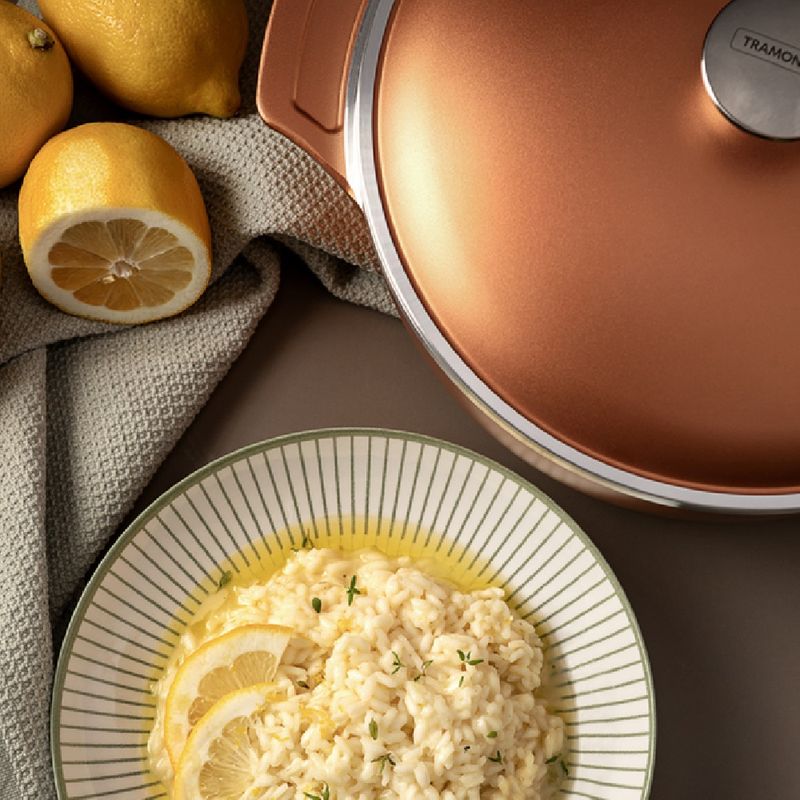 Vivencie experiências incríveis na cozinha com a Caçarola Tramontina Lyon em Alumínio Forjado com Revestimento Interno e Externo Antiaderente Starflon High Performance Dourado com Tampa 24 cm de diâmetro 3,7 L! Perfeita para te auxiliar no preparo dos mais variados tipos de receitas, ela é produzida totalmente em alumínio forjado e conta com revestimento em antiaderente Starflon High Performance, o melhor da tecnologia antiaderente. De fácil limpeza, é muito resistente e garante maior durabilidade. Com ela, você tem uma caçarola versátil e funcional para cozinhar, fritar e inclusive, levar ao forno para assar e gratinar aquela receita especial. Ela ainda acompanha tampa e levará para sua cozinha o brilho incrível da cor dourada! - Destaques:• Corpo de alumínio forjado com espessura de 8mm que proporciona cozimento rápido e uniforme.• Tampa de alumínio com espessura de 4,5mm que proporciona cozimento rápido e uniforme.• Revestimento interno e externo de antiaderente Starflon High Performance que não gruda, é fácil de limpar, mais durável, não é prejudicial à saúde e é livre de PFOA.• Alças em alumínio forjado e pegador de aço inox.• É possível assar, cozinhar, fritar, descongelar e até leva-las ao forno sem a tampa para gratinar.• Pode ir à máquina de lavar louças, porém, para maior durabilidade do produto, indicamos lavar manualmente.• Pode ser utilizada nos fogões: gás, elétrico, vitrocerâmico - resistência elétrica e indução. - Especificações:• Altura: 16cm• Largura: 25,7cm• Comprimento: 24cm• Peso: 2,98kg• Capacidade: 3,7L• Material: Alumínio forjado• Cor: Dourado